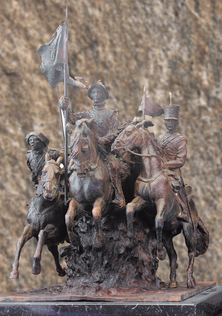 Realizada en 1928. El monumento conmemora la historia del Regimiento Alcántara desde su fundación. Agrupa a los cinco jinetes en una magistral plástica de movimiento. El Regimiento de Cazadores "Alcántara 14" de caballería, llegaba al límite humanamente insuperable de la acción de su arma; la protección de la retirada Annual. Medidas: 35 cm alto. 25 cm ancho. 23 cm fondo. 25 kg peso.