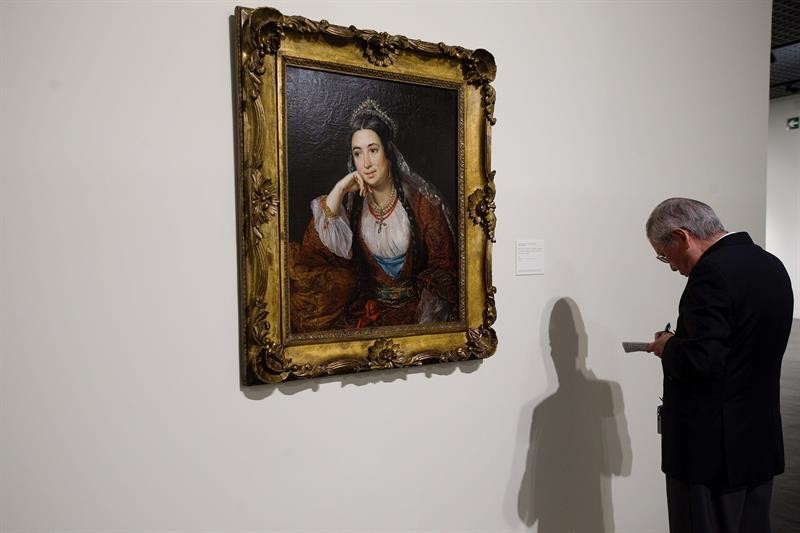 Obra de Vasini Tropinin "Retrao de la escritora Varvara Lizogub" en la sede en Málaga del Museo Estatal de Arte Ruso de San Petersburgo.