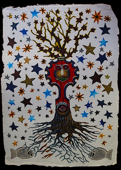 Bolígrafo y grafito en papel, 59 x 79 cm, de Abu Bakar Mansaray