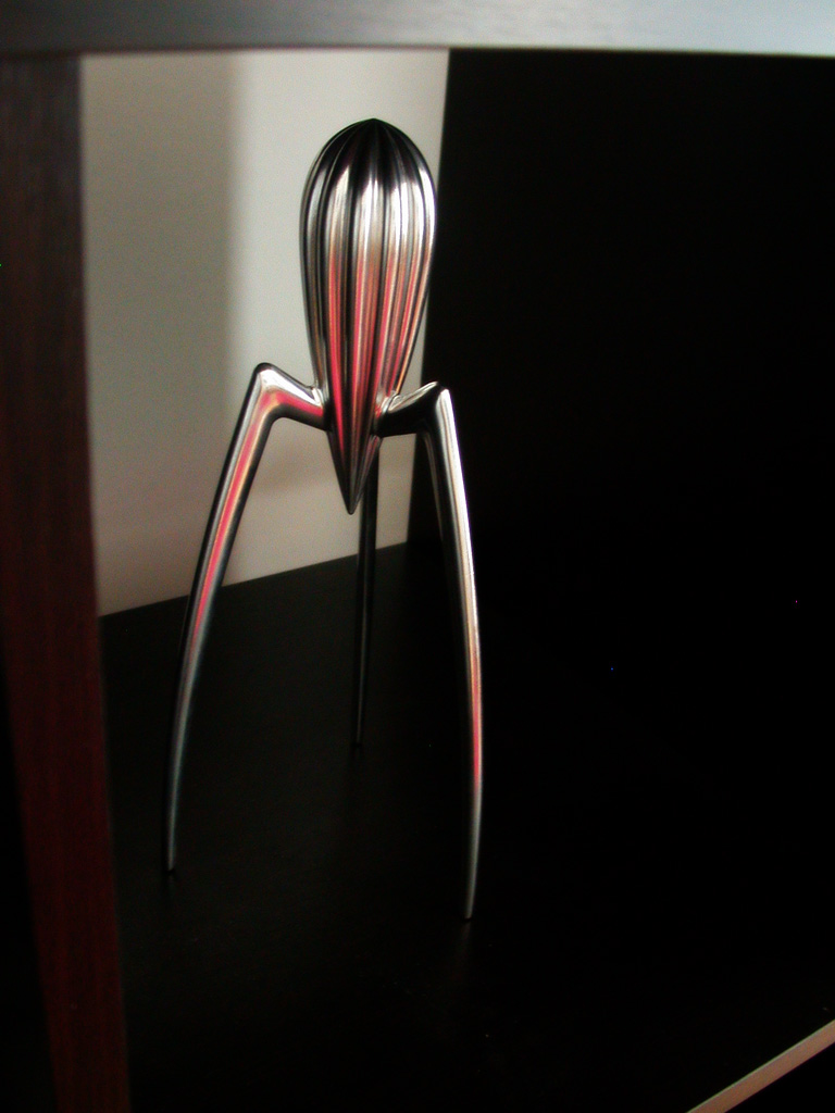 Es difícil encontrar algún objeto de la segunda mitad del S XX que haya sido tan reproducido gráficamente como este exprimidor de limones creado por Philippe Starck en 1990 que todos hemos visto aunque muy pocos hayamos usado. Es otro ejemplo típico de diseño industrial en el que las líneas de un utensilio están definitivamente marcadas por el uso que se le va a dar, pero aún así logra una forma revolucionaria. Gracias a este y otros diseños igualmente llamativos Starck es considerado actualmente uno de los diseñadores más influyentes del mundo