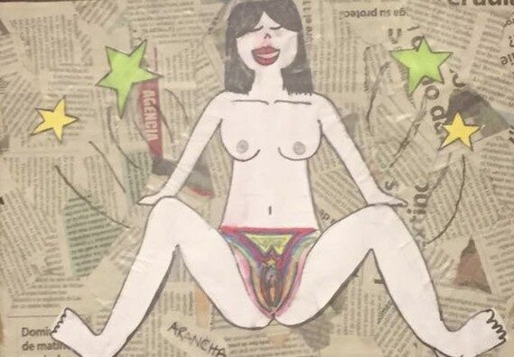 Entre las obras, se podía ver la pintura Vulva Woman y se completaban el moldes con motivos alusivos al pene.