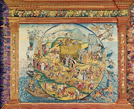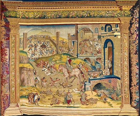 Al contrario de lo que ocurre con las pinturas, no se tiene certeza de cómo estos tapices pasaron a formar parte de las Colecciones Reales. "Los tapices pertenecieron a un gran diplomático de Felipe II, el cardenal Granvela. Más tarde, se conoce que Felipe IV hizo uso de la colección en diferentes ceremonias cortesanas muy importantes, decoró los apartamento del Alcázar de Madrid y la jornada en la que el Príncipe Baltasar Carlos fue proclamado sucesor de la corona. Tuvo una preeminencia especial dentro de las ceremonias cortesanas, pero cómo llegó no se sabe. Es muy probable que llegase a través de Rodolfo II, pero no existe un archivo que dé certeza a esa hipótesis".