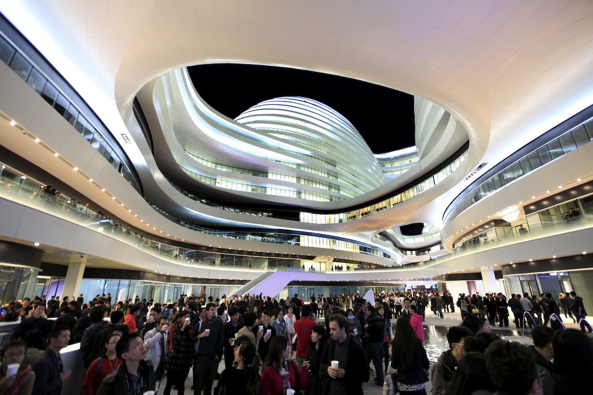 Galaxy SOHO es un inmenso complejo de cinco volumenes conectados a través de pasarelas, generando una óptica panorámica totalmente fluida en su recorrido.