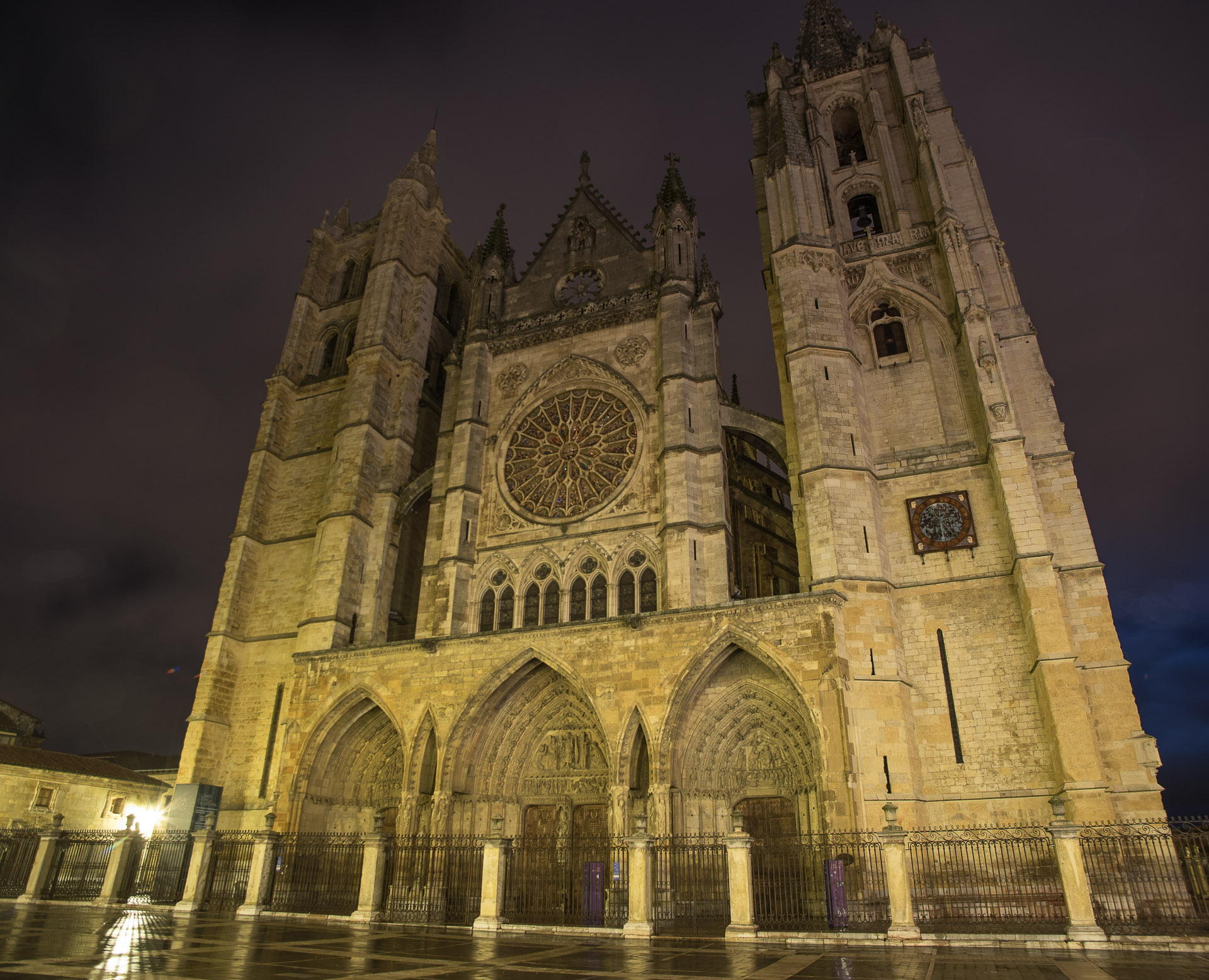 Durante el S XIII el crecimiento de las ciudades y la nueva espiritualidad que llega de Francia llevan a varias ciudades españolas a sustituir la anteriores catedrales románicas por nuevos y monumentales edificios góticos. La de León es un ejemplo perfecto de ese proceso y es considerada la de un estilo gótico más puro de toda España, con un enorme parecido a grandes templos franceses. Su fachada es sencilla y de una belleza difícilmente superable, enmarcada por las dos torres y con elemenos como el enorme rosetón y la presencia visible de los contrafuertes que sostienen la alta nave central