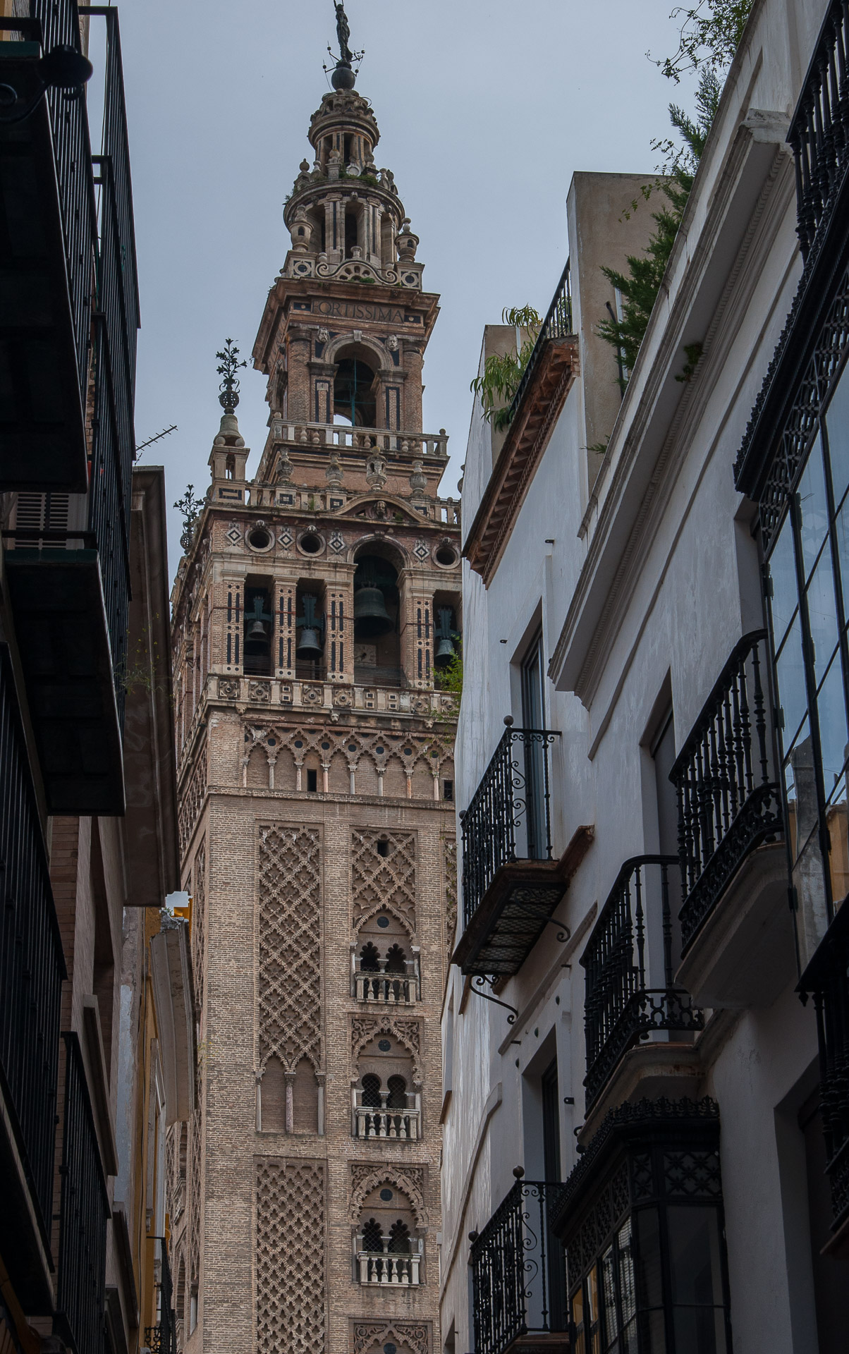 Aunque no sea la más alta, sin duda no hay en España una torre de Catedral tan conocida como la Giralda sevillana. Su parte original es el siglo XII en plena dominación Almohade y es de sobra conocida su vinculación con alminares en Marruecos, especialmente con la torre de Kutubía de Marrakech. En la segunda mitad del siglo XVI se añadió el cuerpo de campanas superior, un remate renacentista que sorprendentemente resulta muy armonioso con la parte inferior
