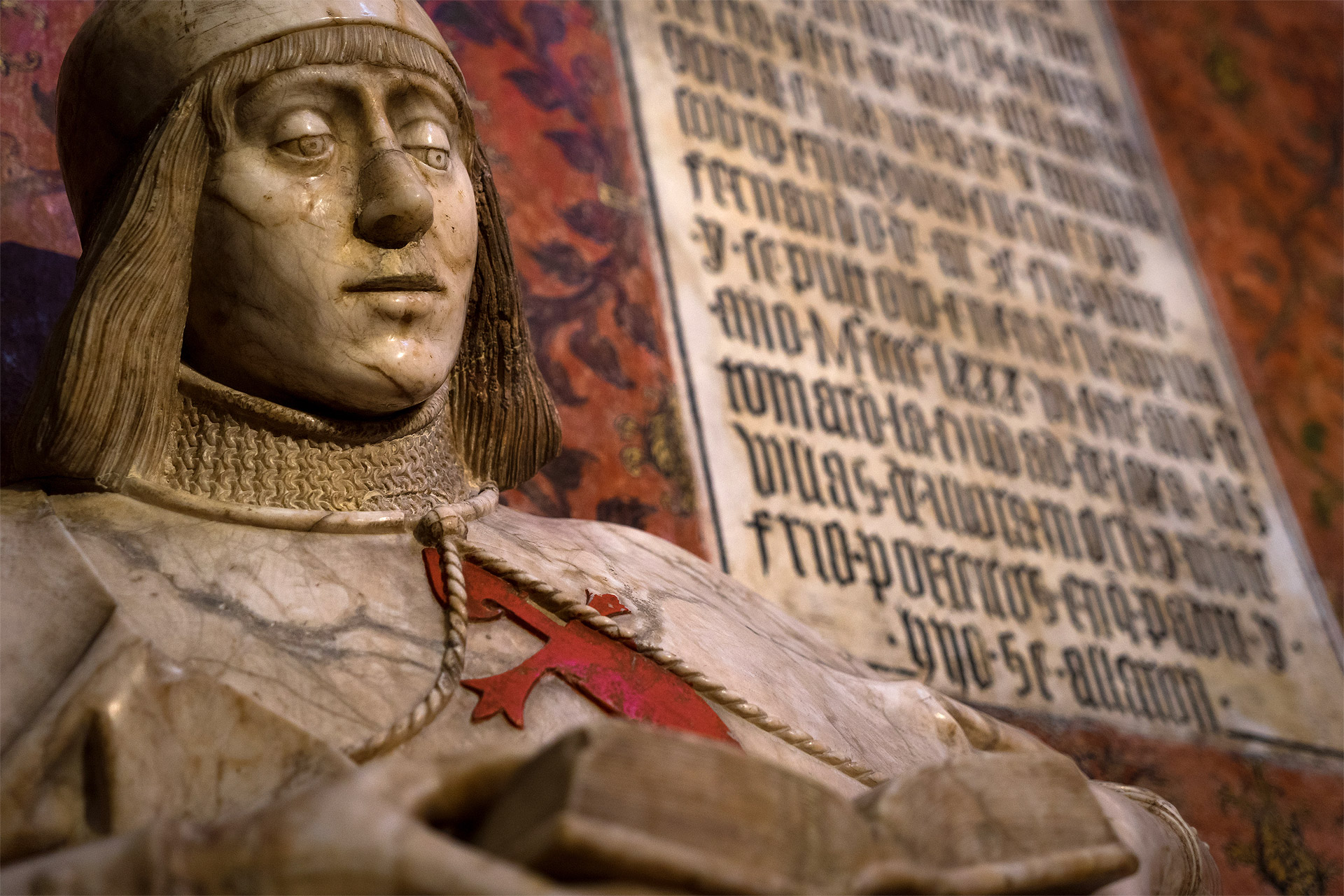 NO hay gran catedral en la que no descansen los restos de grandes hombres, ya sean o no de la Iglesia: reyes, cardenales, soldados pueblan las naves y las capillas de los templos españoles, pero quizá de todas estas tumbas la más hermosa sea la del Doncel de Sigüenza, Martín Vázquez de Arce, un soldado que murió en las últimas guerras de la Reconquista. La estatua se realizó en el final del siglo XV y los primeros años del XVI, es de estilo gótico tardío y tiene lo que en ese momento es una enorme novedad iconográfica: el fallecido no aparece durmiente sino recostado, con un libro en sus manos y una pierna sobre la otra. El estilo escultórico y la pose de la figura la dotan de un realismo sorprendente