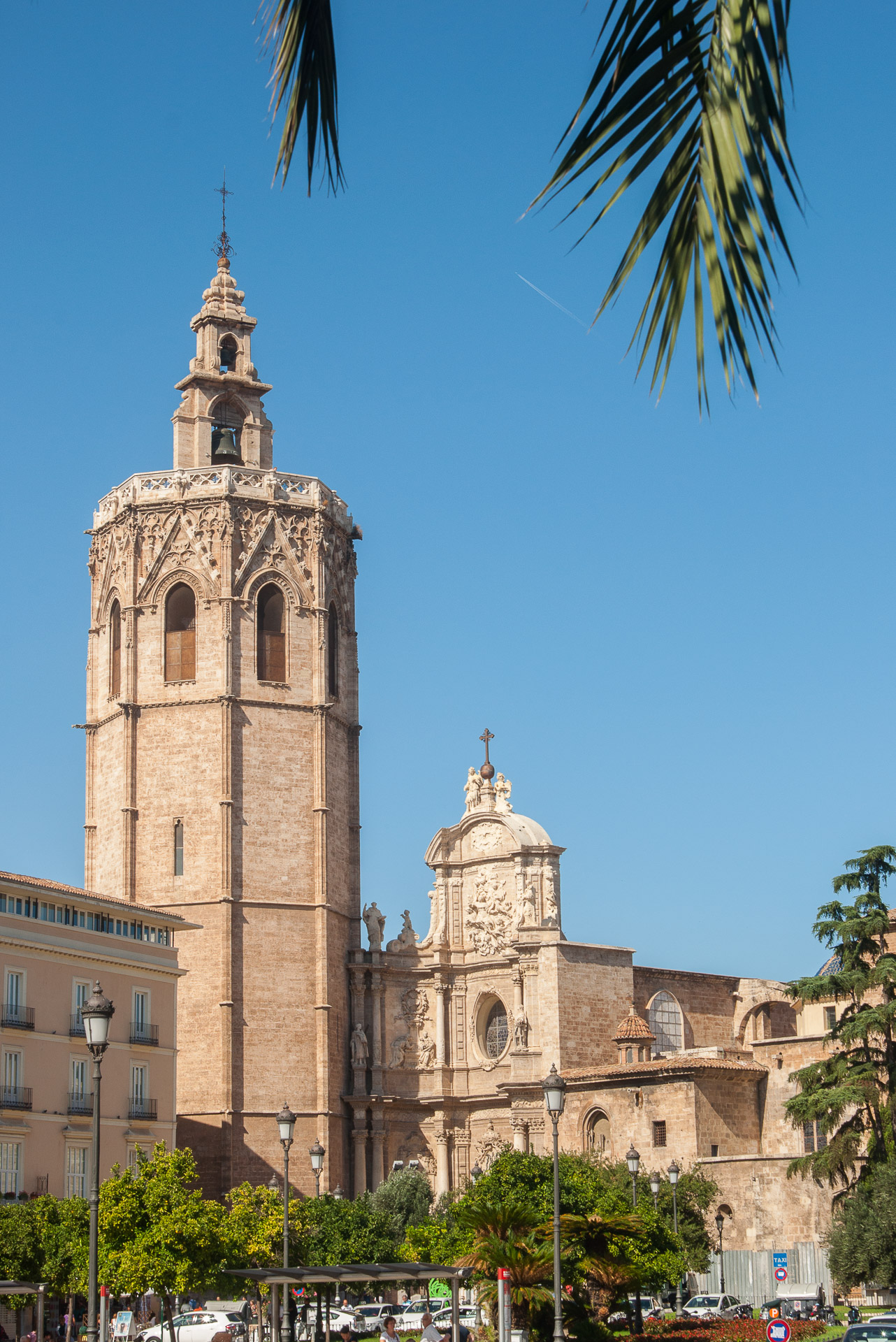 La torre de la Catedral de Valencia no es tan alta como la Giralda -mide 63 metros incluyendo la espadaña de su torre- pero su gran diámetro la hace bastante imponente, amén de que ofrece unas vistas excelentes de la ciudad. De estilo gótico valenciano, se empezó a construir a finales del siglo XIV y se terminó décadas después, a excepción de la espadaña que se añade en el XVII