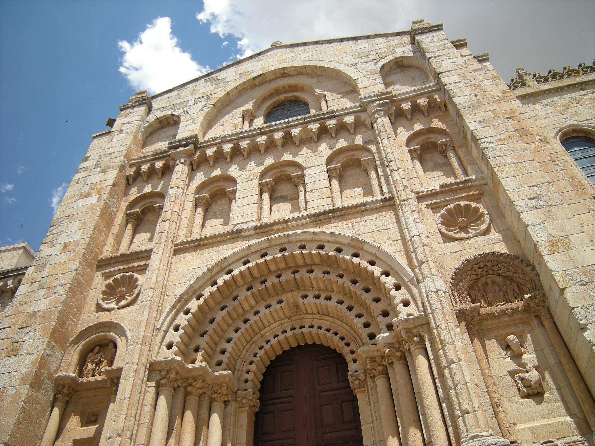 El románico fue el estilo de las primeras grandes catedrales españolas, pero en la mayor parte de los casos se cambió luego por edificios más grandes en otros estilos, o se renovó tanto el templo que no puede llamarse ya románico. Incluso en la mayor parte de aquellos casos en los que la iglesia sigue siendo románica las fachadas se cambiaron, así que quedan muy pocas portadas verdaderamente románicas y la más hermosa es probablemente la portada del Obispo, en Zamora, de una sencillez llamativa y realmente encantadora