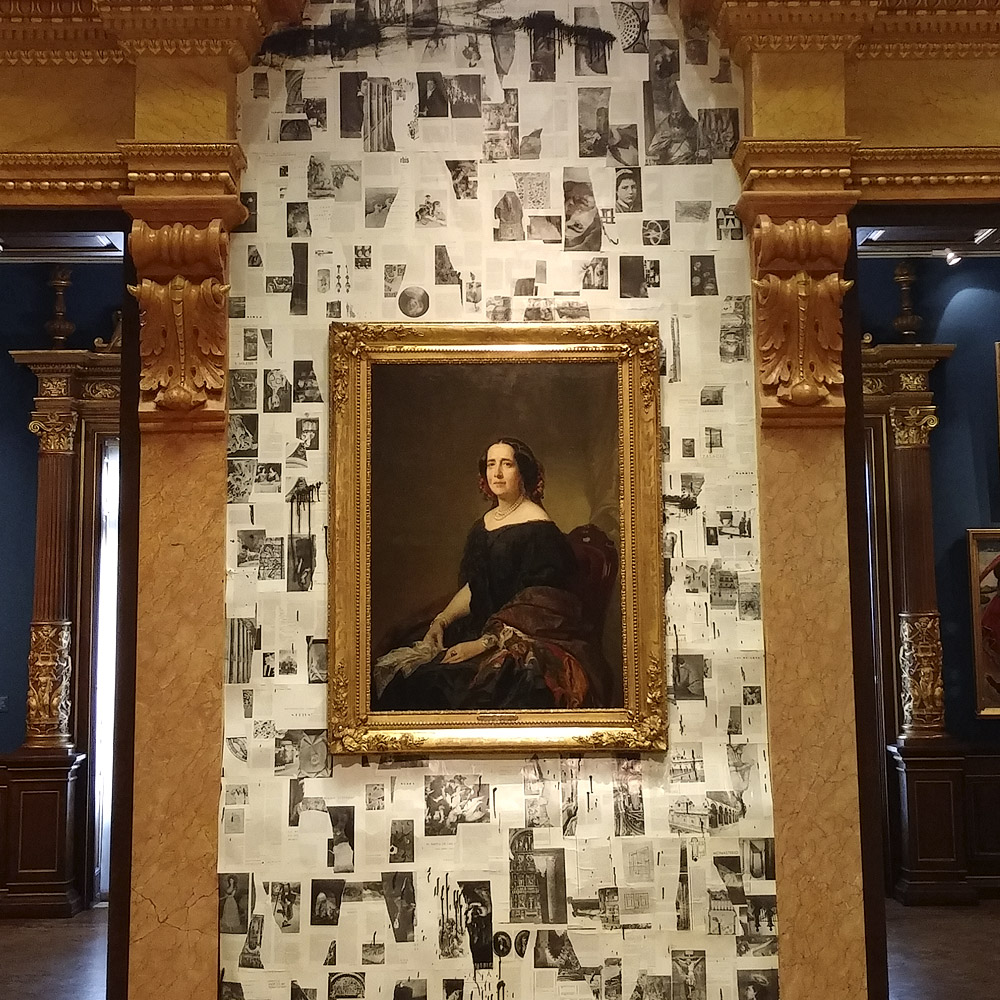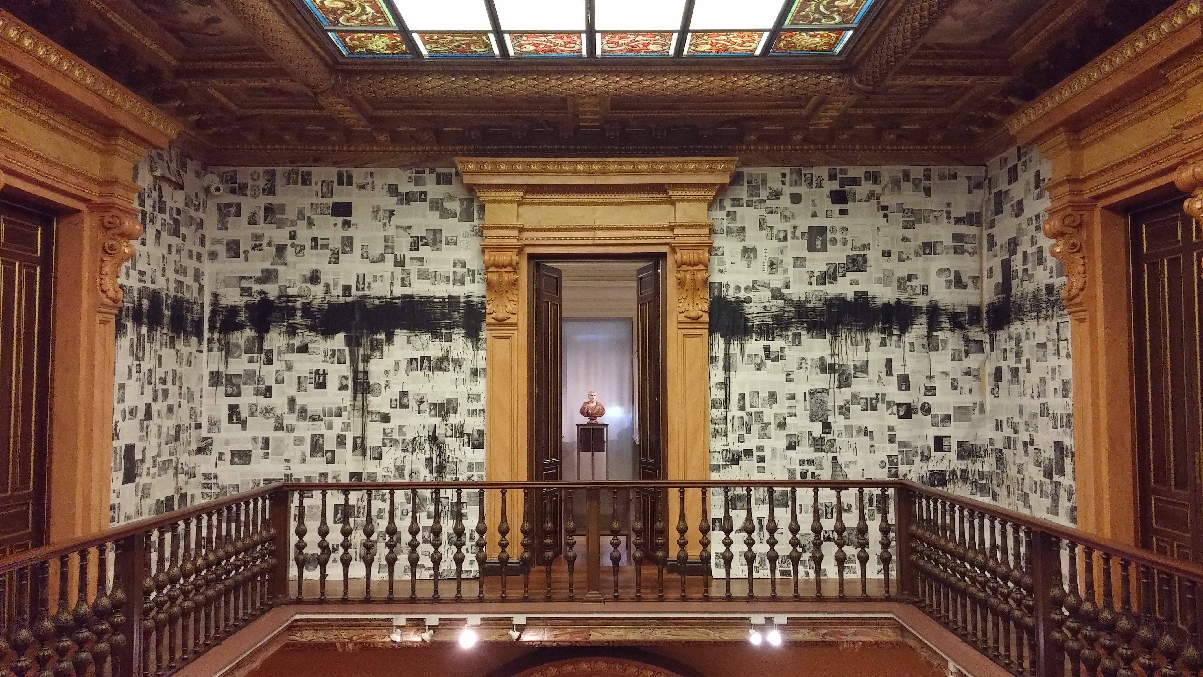 Jorge Galindo (Madrid, 1965) asume el reto de reinterpretar la Colección Lázaro Galdiano mediante un gran collage compuesto por miles de páginas de la Revista de Arte Goya, publicación editada por la Fundación Lázaro Galdiano desde 1954. Invade la totalidad de las paredes del Salón de baile y la galería superior del museo. El artista reinterpreta la arquitectura del palacio que alberga el museo y lanza un guiño a la faceta humanista de José Lázaro. La muestra forma parte del programa institucional de la feria de arte contemporáneo ARCOmadrid 2017 y puede verse hasta el 14 de mayo.