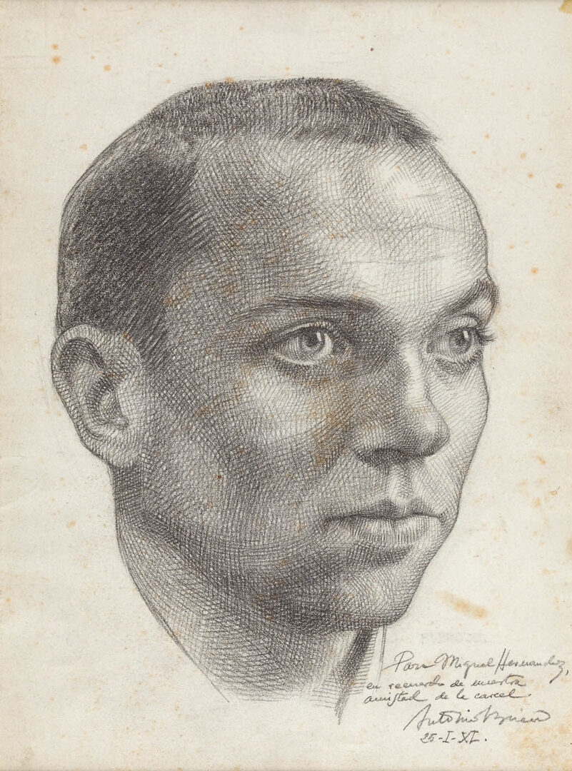 En su época de cautiverio en diversas cárceles, condenado a muerte durante ocho largos meses y medio hasta que le conmutaron la condena, Buero Vallejo contaba haber regalado alrededor de mil dibujos, la mayoría de ellos para regalárselos a sus compañeros de presidio. En la cárcel de Conde de Toreno sólo recordaba haber realizado unos sesenta, algunos a solicitud de los reclusos. "Miguel no me lo pidió pero le gustó la idea. Lo retraté en un par de tardes. Se lo di, naturalmente y él se lo envió a Josefina". Llevaba esta dedicatoria: "Para Miguel Hernández en recuerdo de nuestra amistad de la cárcel". Y debajo la firma y la fecha, 20-I-XL.