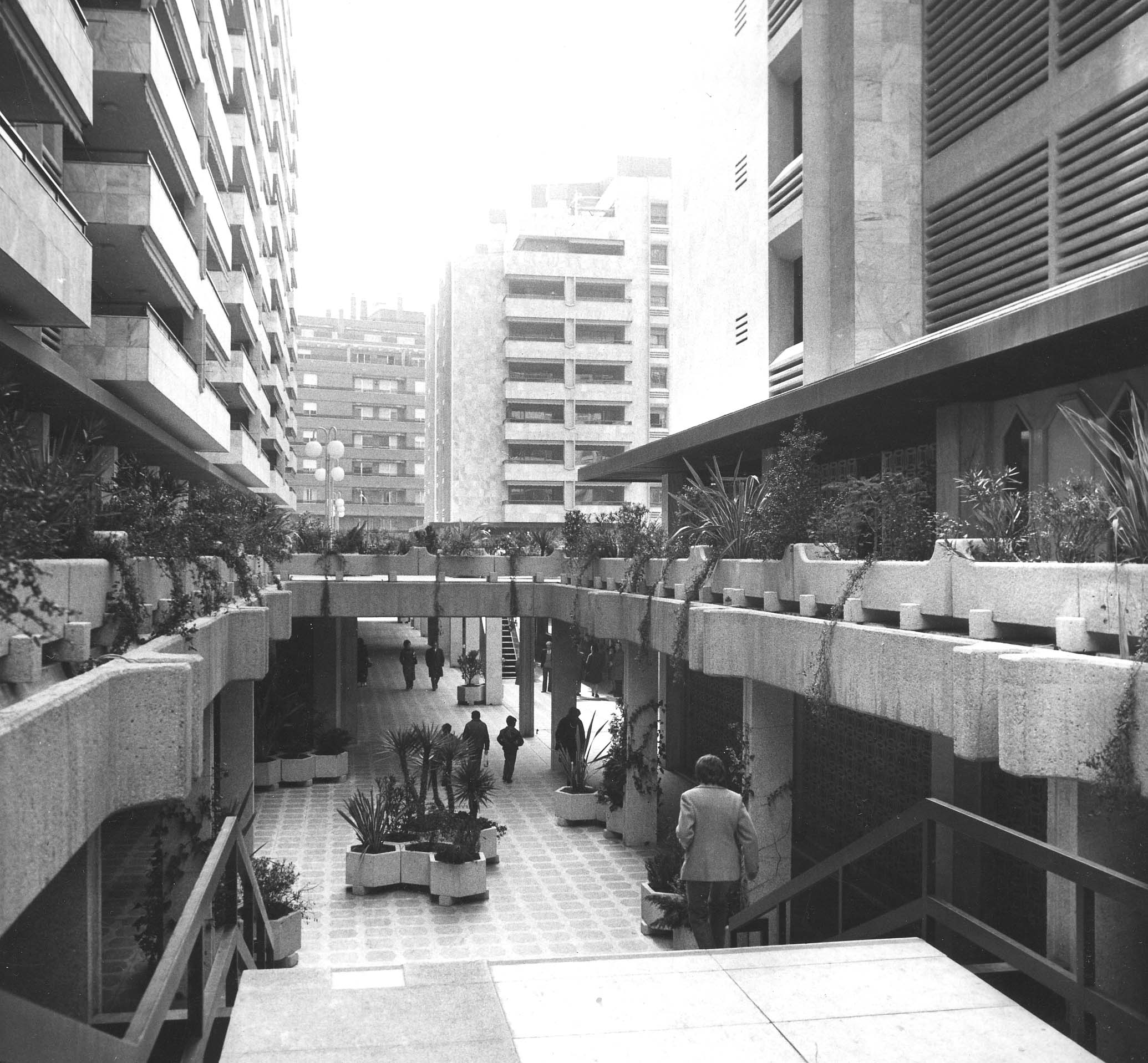Situado en el barrio de Moncloa, el complejo Galaxia generó polémica por la alambicada estructura interior, pensada para el desarrollo social de los que allí habitaban.