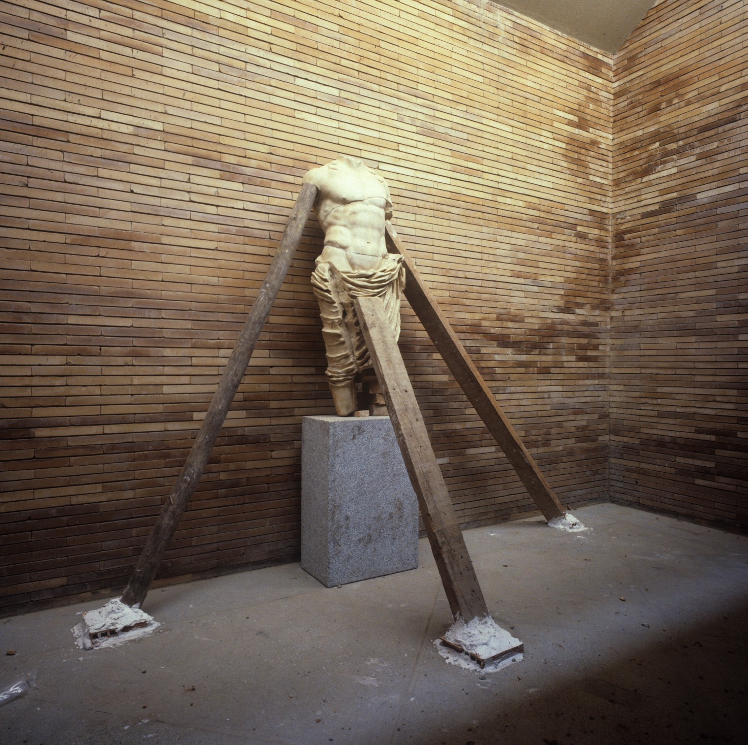 Proceso de montaje de una escultura romana en el Museo Nacional de Arte Romano de Mérida. 1986
