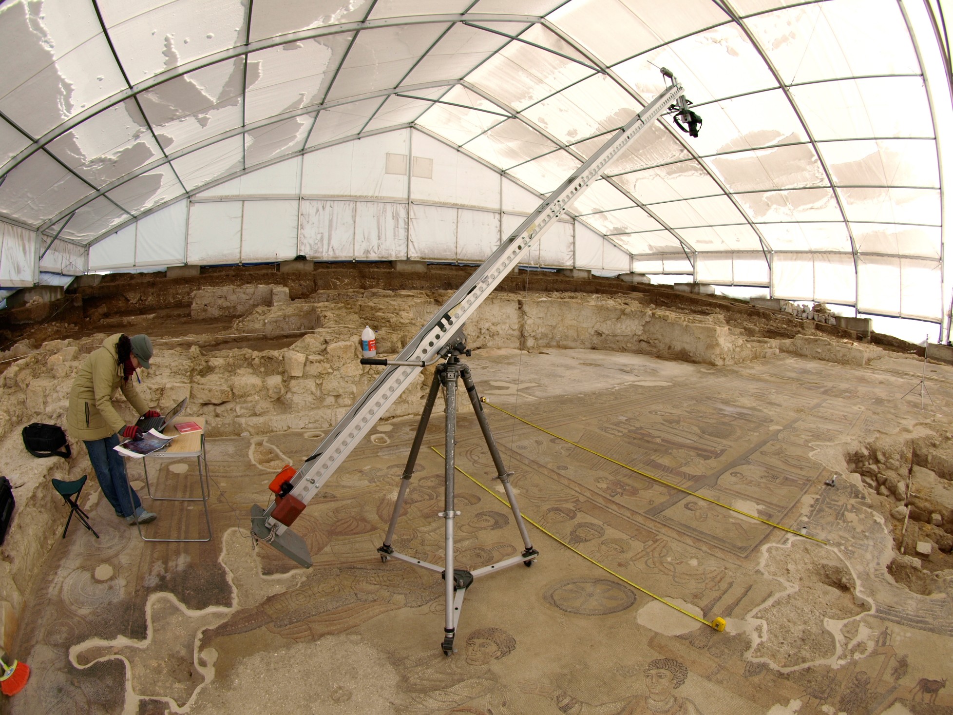 Proceso de documentación fotográfica para obtener la imagen de conjunto del mosaico de la Villa romana de Noheda (Villar de Domingo García, Cuenca). 2009