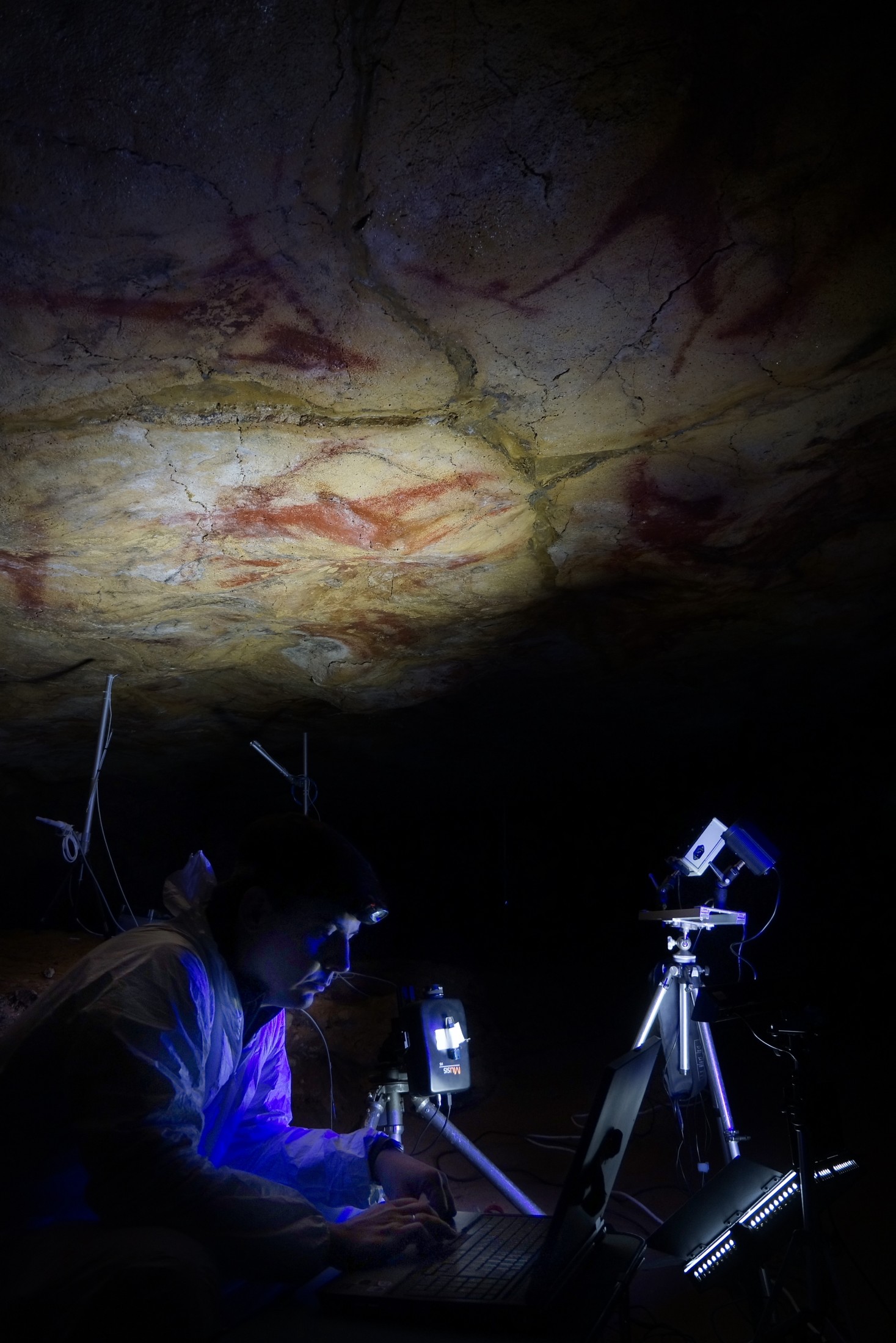 Proceso de toma de imágenes multiespectral con una cámara Musis de 32 bandas del Techo de los Polícromos de la Cueva de Altamira (Santillana del Mar, Cantabria).2013