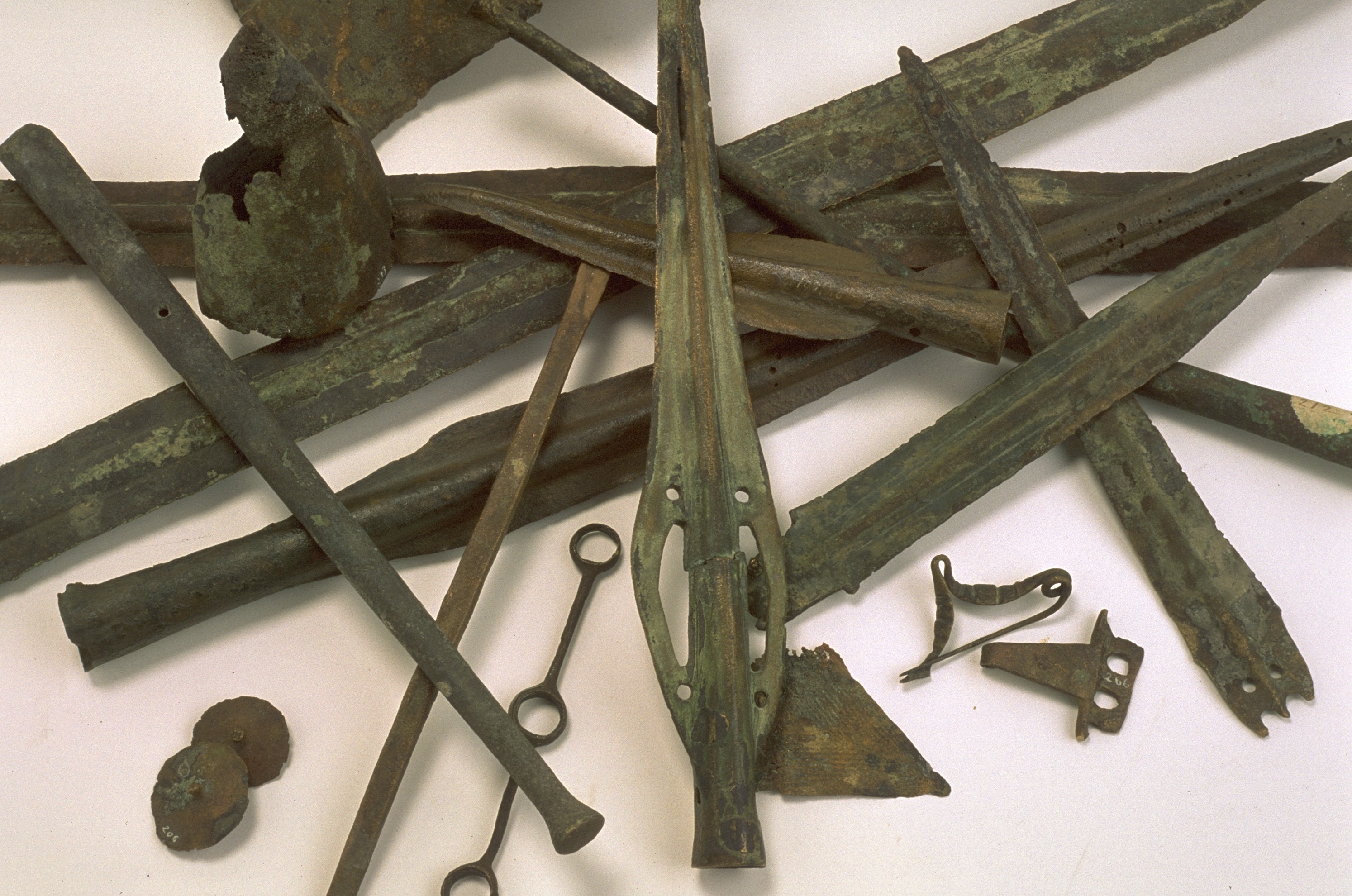 Conjunto de espadas y otro tipo de armas y objetos, datados en el Bronce Final, aparecidos al realizar obras de dragado en el puerto de Huelva en 1923. 1997.