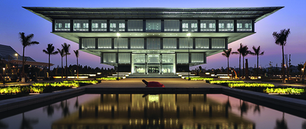 El arquitecto japonés Tadao Ando concibió un espacio expositivo formado por cinco pabellones rodeados de agua y un sistema inteligente de iluminación, que combina la luz natural con la artificial.
