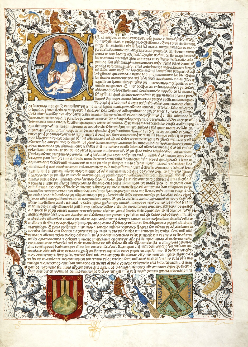 Carta de donación de seis mil maravedíes cada año de la Martiniega de Cuéllar al monasterio de Santa María de la Armedilla. Beltrán de la Cueva y María de Velasco, duques de Alburquerque Monasterio de Santa María de la Armedilla, 22 de enero de 1489.