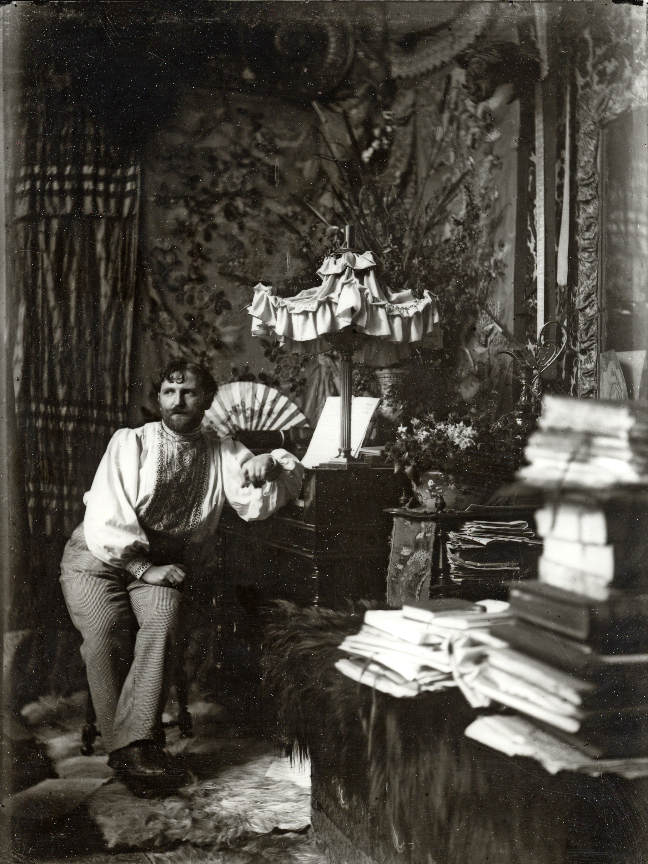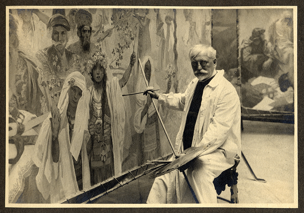 Alphonse Mucha. Autorretrato trabajando en el “Épico Eslavo” en su estudio de Bohemia, Mucha Trust.