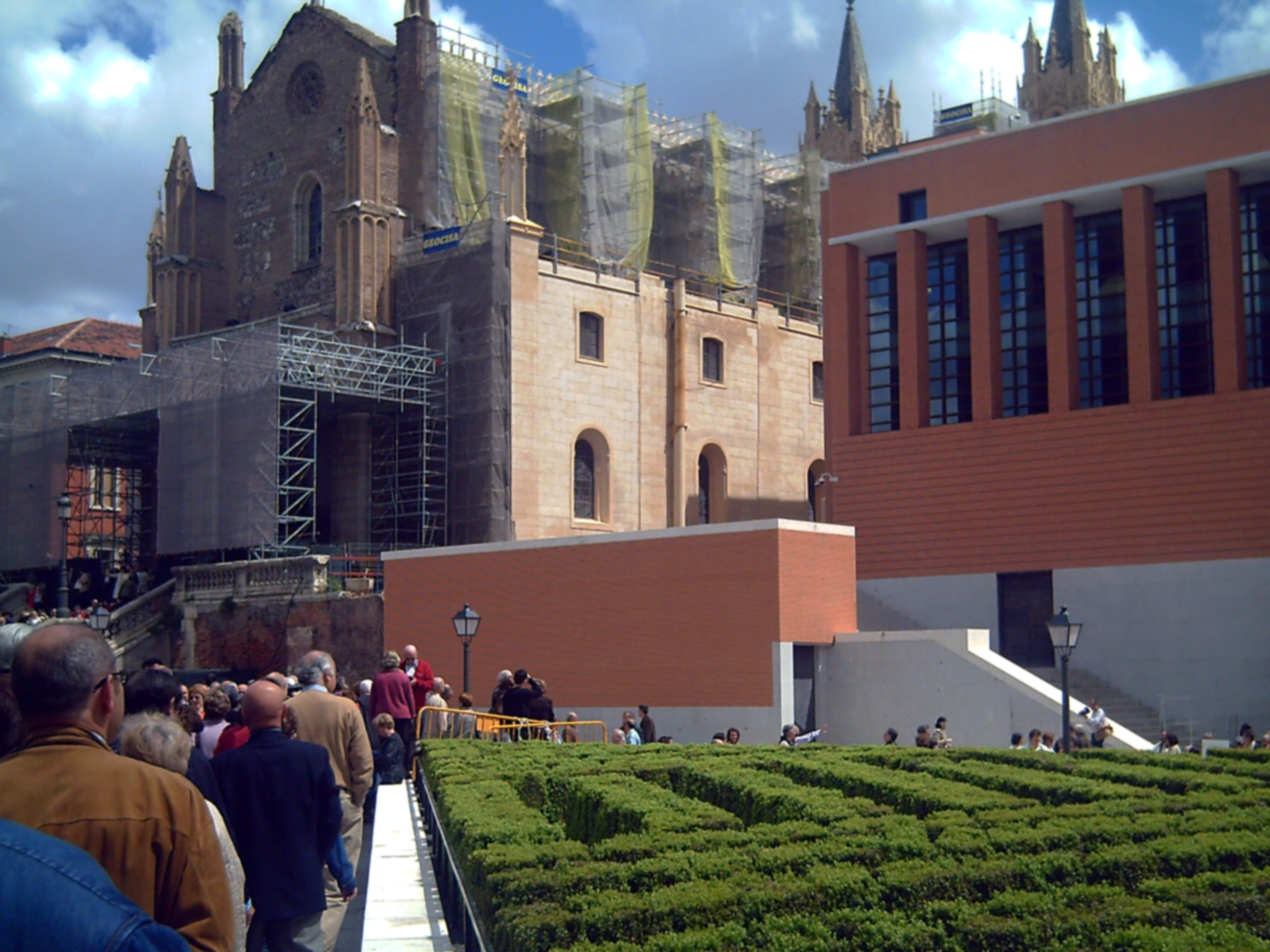 Texturas y formas contrapuestas que dan volúmen al mastodóntico bloque de Rafael Moneo.