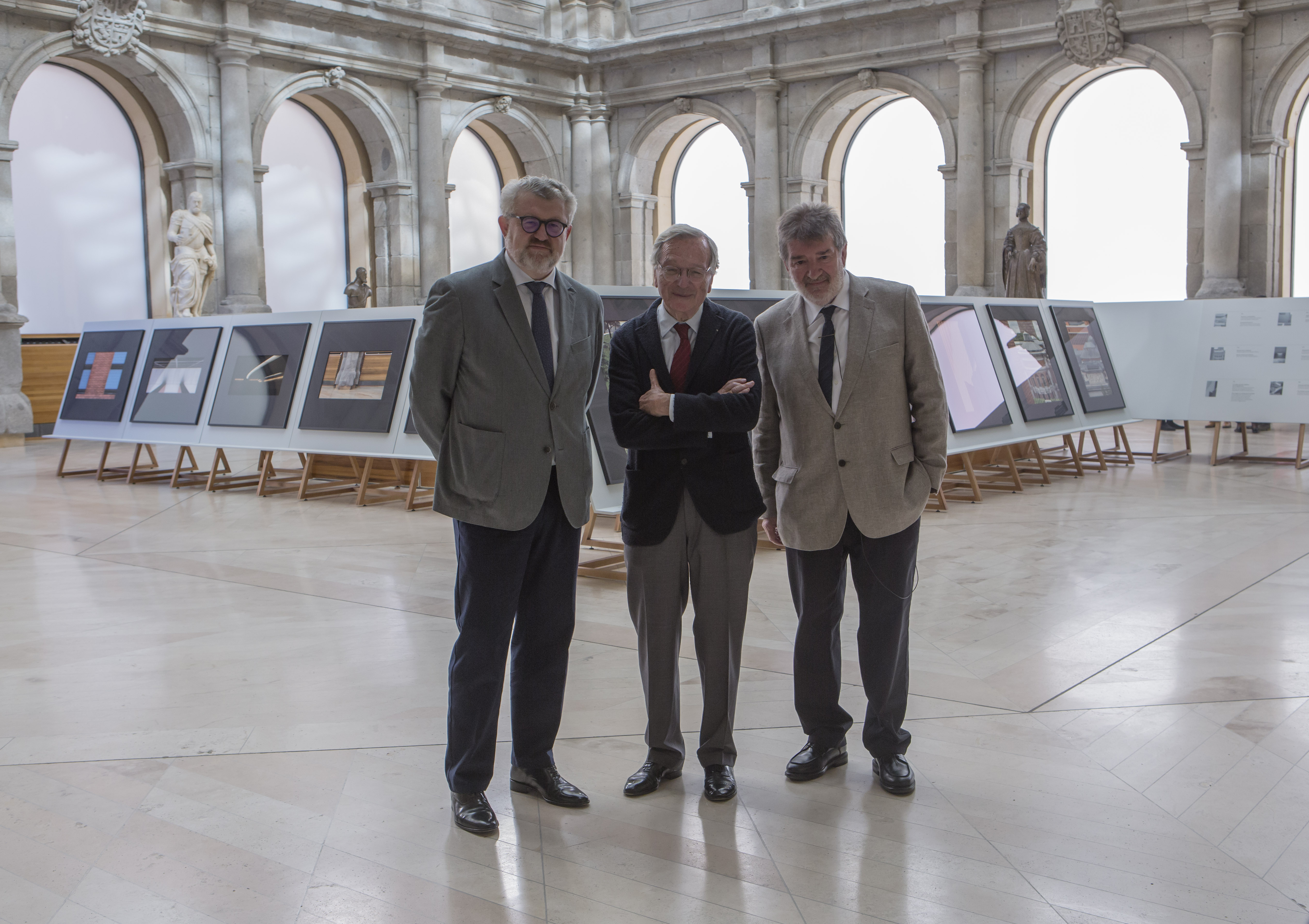 Los responsables de la exposicion en homenaje a la ampliación del Museo del Prado: Miguel Falomir, director del Museo del Prado; Rafael Moneo, arquitecto y Patrono del Real Patronato del Museo del Prado; y Joaquín Bérchez, fotógrafo.
