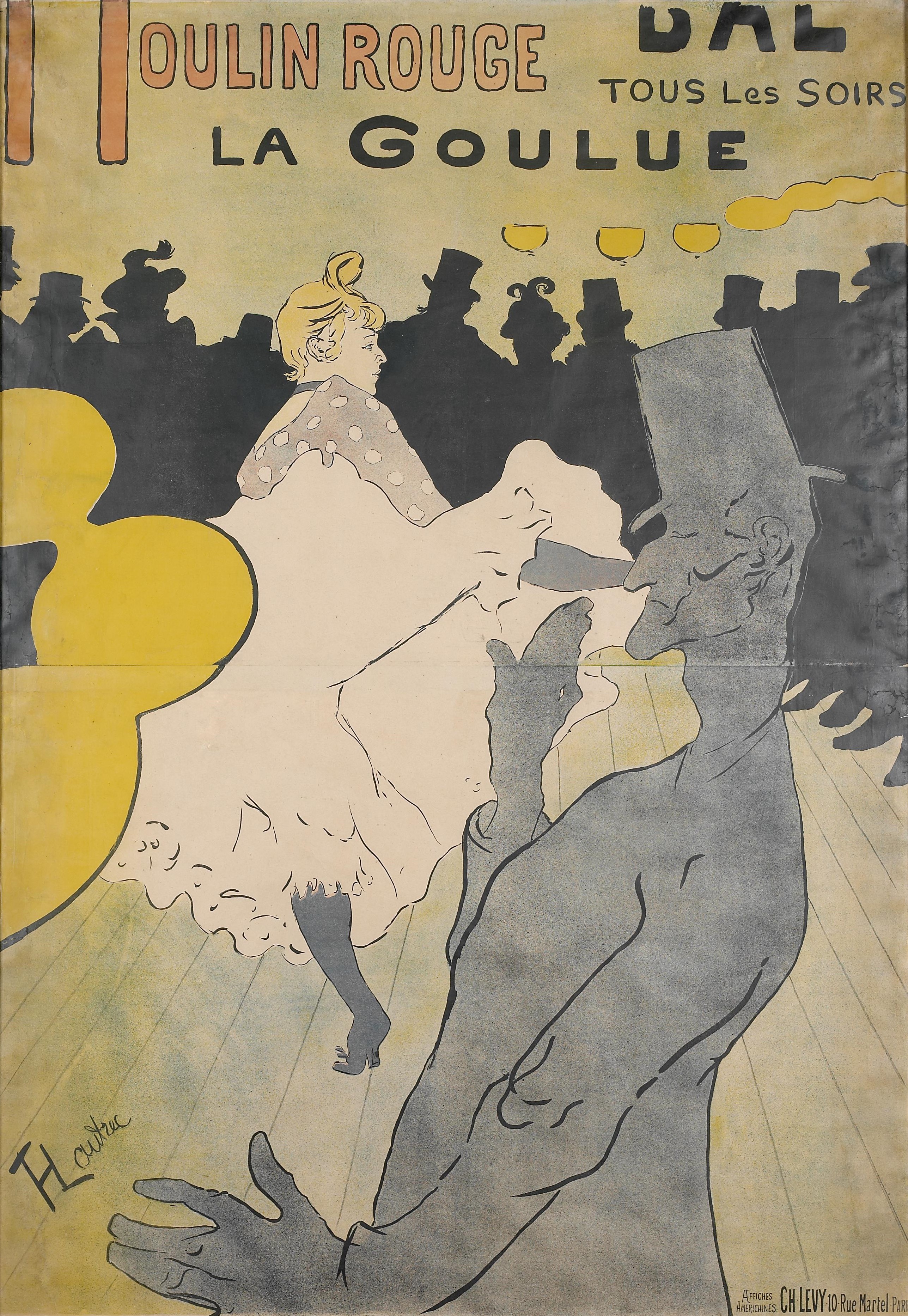 El primer encargo lo recibió en 1891 de parte de Charles Zidler, que buscaba publicitar su nuevo local, el Moulin Rouge. Lautrec retrató a la Goulue junto a su compañero de escena masculino Jacques Renaudin, alias le Désossé. Este cartel causó inmediatamente una gran sensación entre el público. "Lautrec no tenía necesidades económicas, provenía de una familia aristocrática francesa, por lo que era muy libre para aceptar los encargos, escogía los que eran afines a sus gustos personales y las bailarinas le fascinaban. Muchas de ellas lo iniciaron en los placeres femeninos". destacó Claire Leblanc, comisaria la muestra.