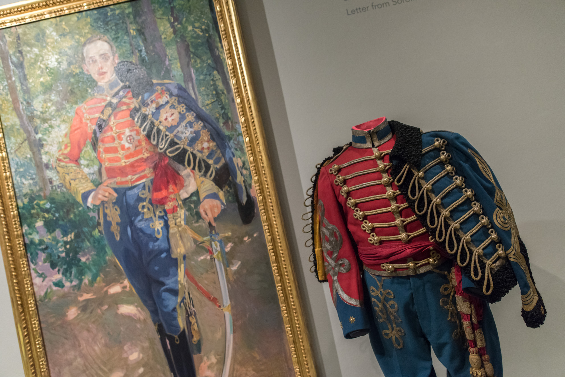 Obra: Retrato del rey Alfonso XIII con uniforme de húsares, 1907, de Joaquín Sorolla y Bastida. Uniforme de gala de teniente de húsares de Pavía.