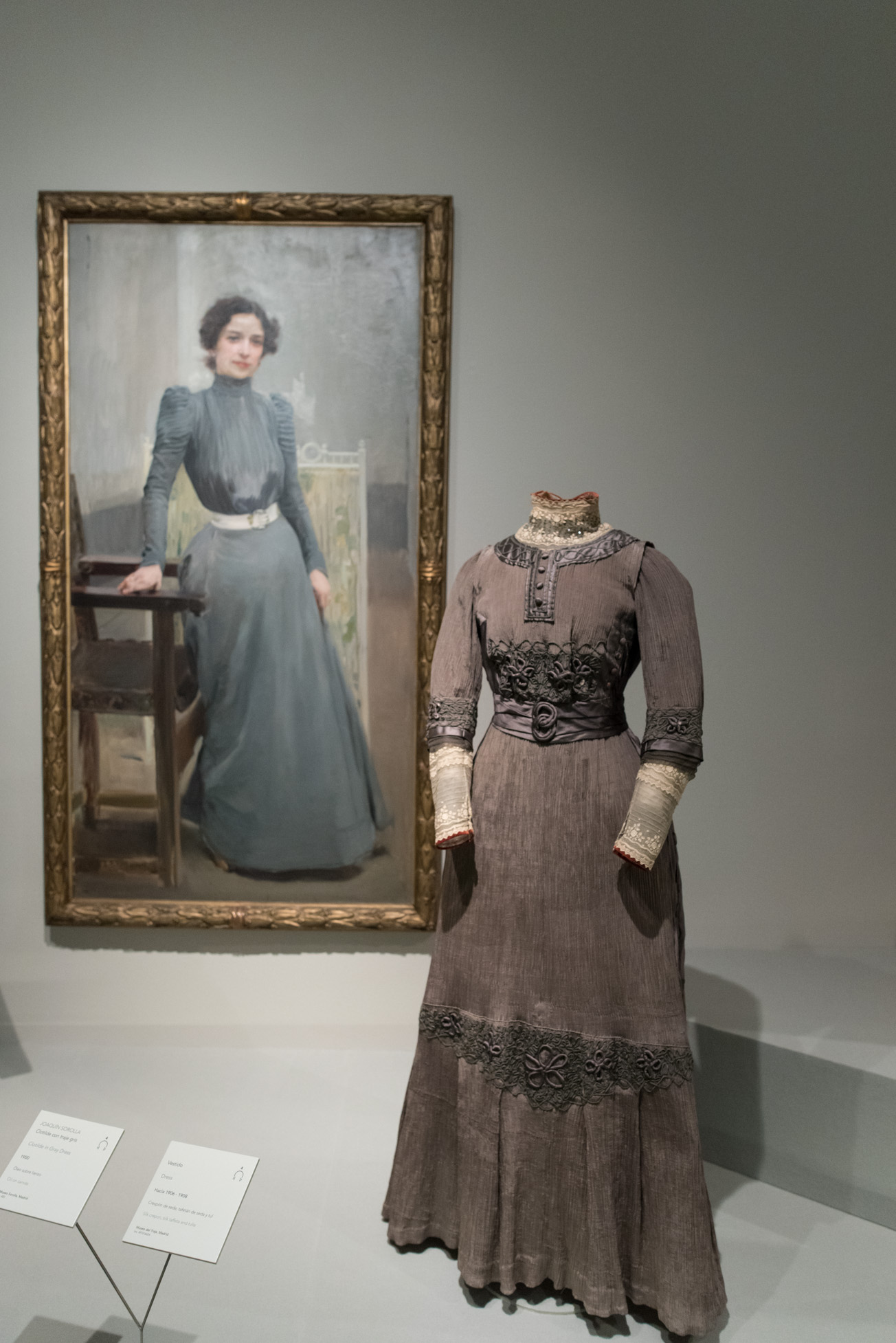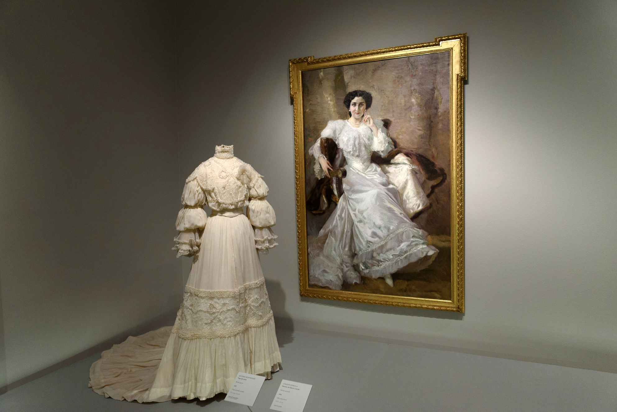 Obra: retrato de María Lorente, 1905, Joaquín Sorolla y Bastida. Vestido: Antonia Montesinos, traje de novia, 1907.