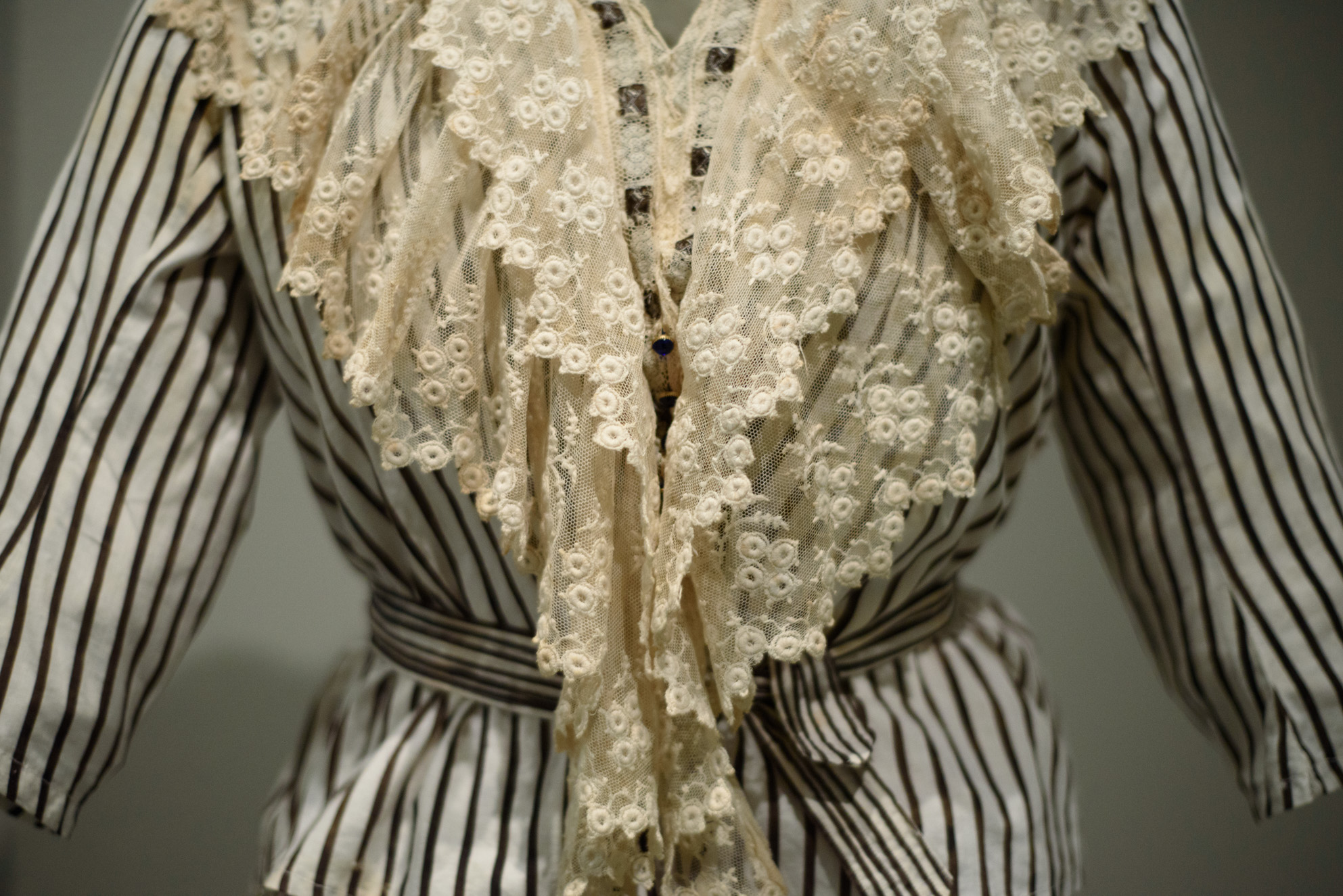 Detalle del vestido, popelín de algodón, encaje y pasacintas.