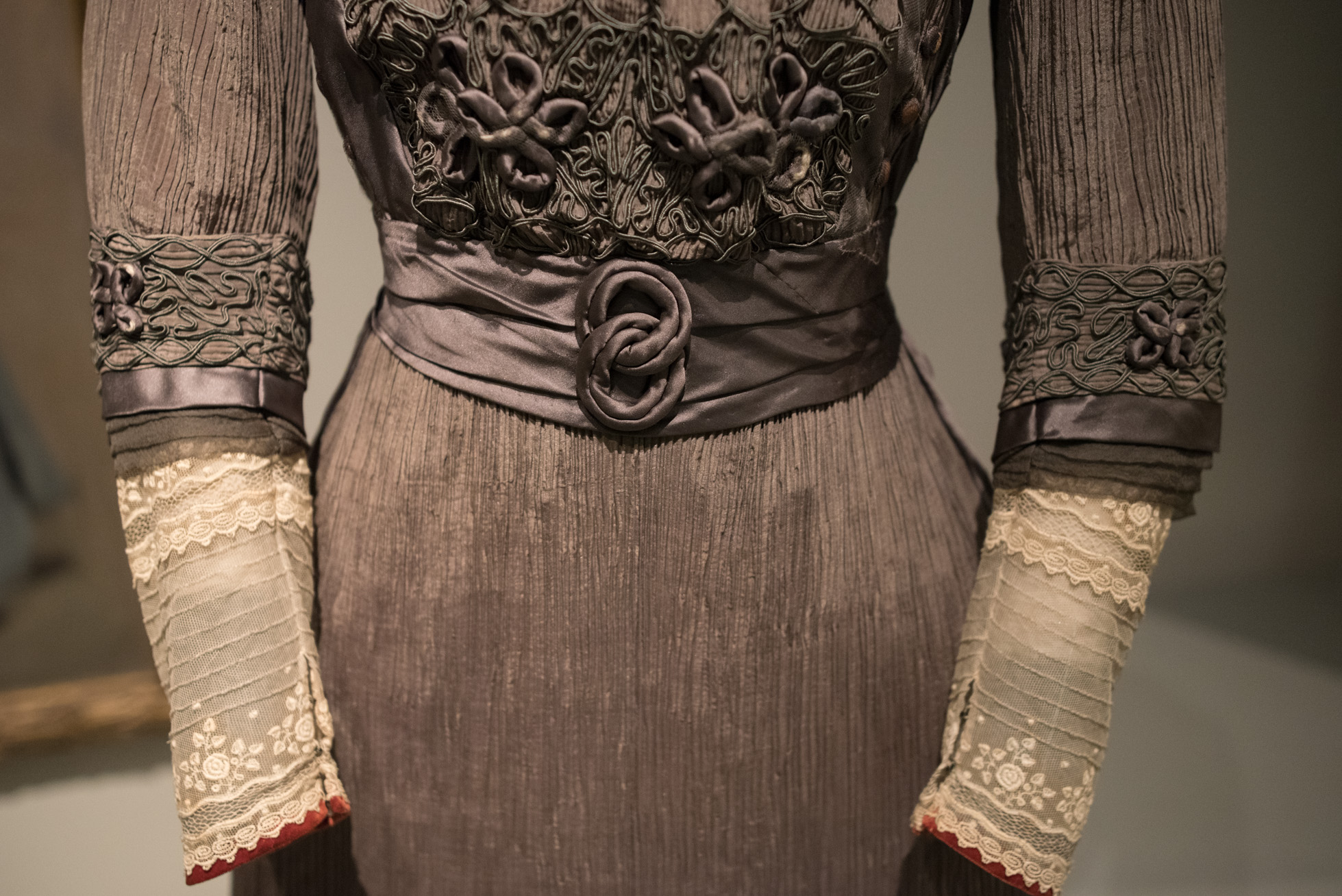 Detalle del vestido, hacia 1906. Crespón de seda, tafetán de seda y tul.