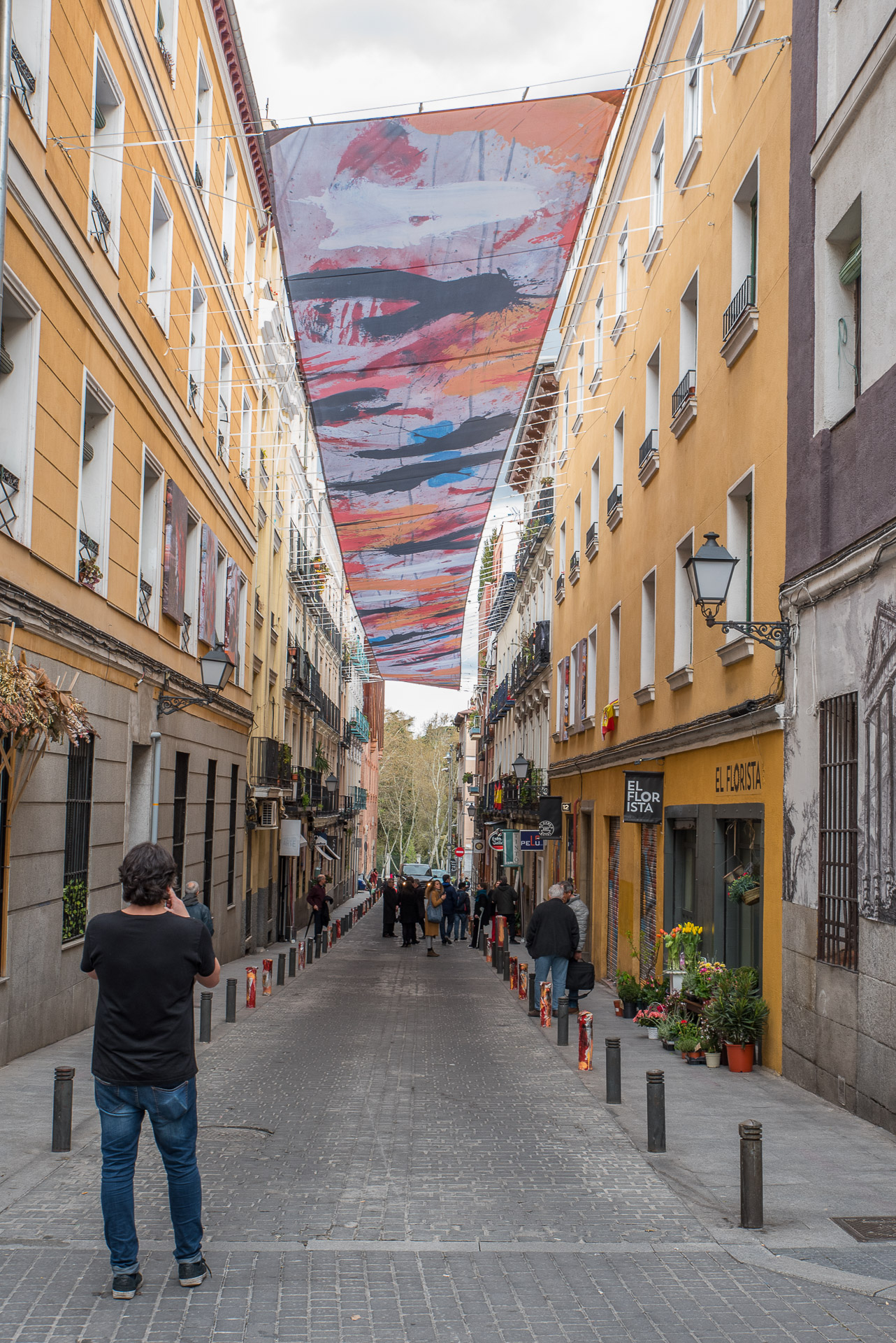 Una lona de 70 metros cubre un buen tramo de la calle Almadén.