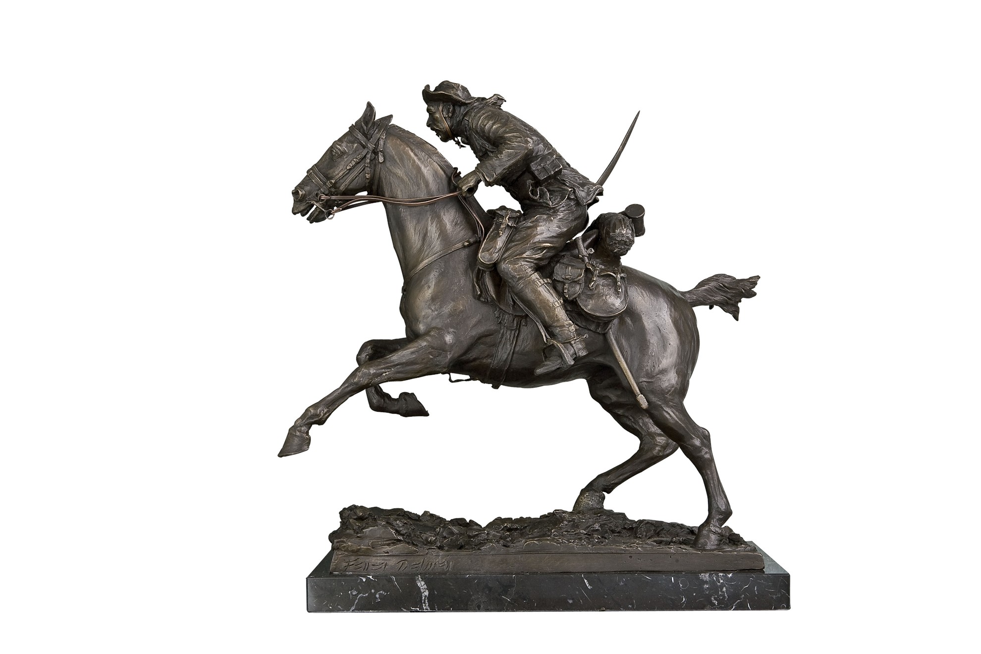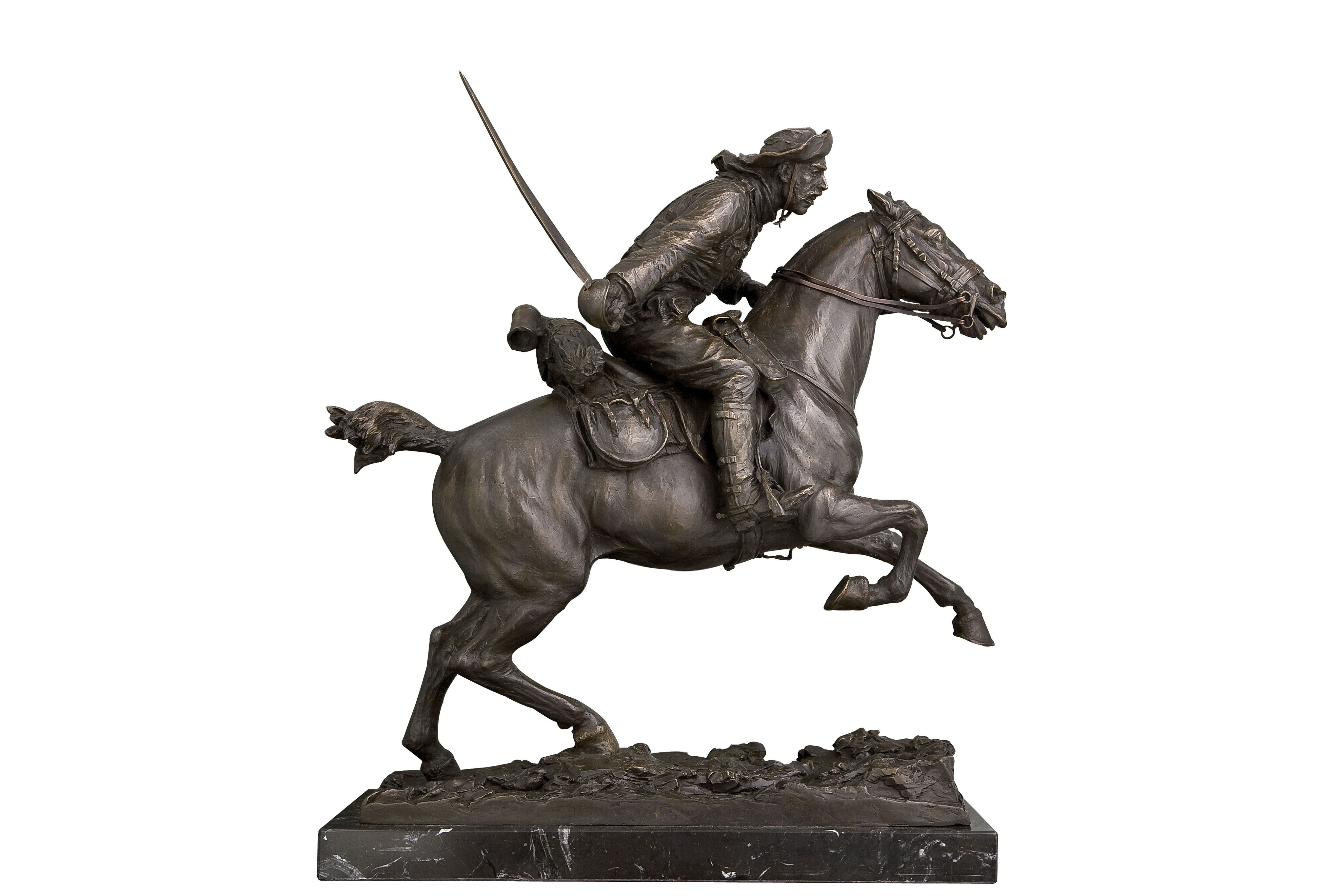 La escultura, realizada por Oscar Alvariño, es fruto de la colaboración en su diseño artístico con Augusto Ferrer - Dalmau, "el pintor de batallas". Se trata de una magnífica escultura cuyo primer ejemplar se encuentra en el Museo del Ejército. Cuenta con el máximo rigor histórico en sus múltiples detalles y refleja una impresionante sensación de movimiento.