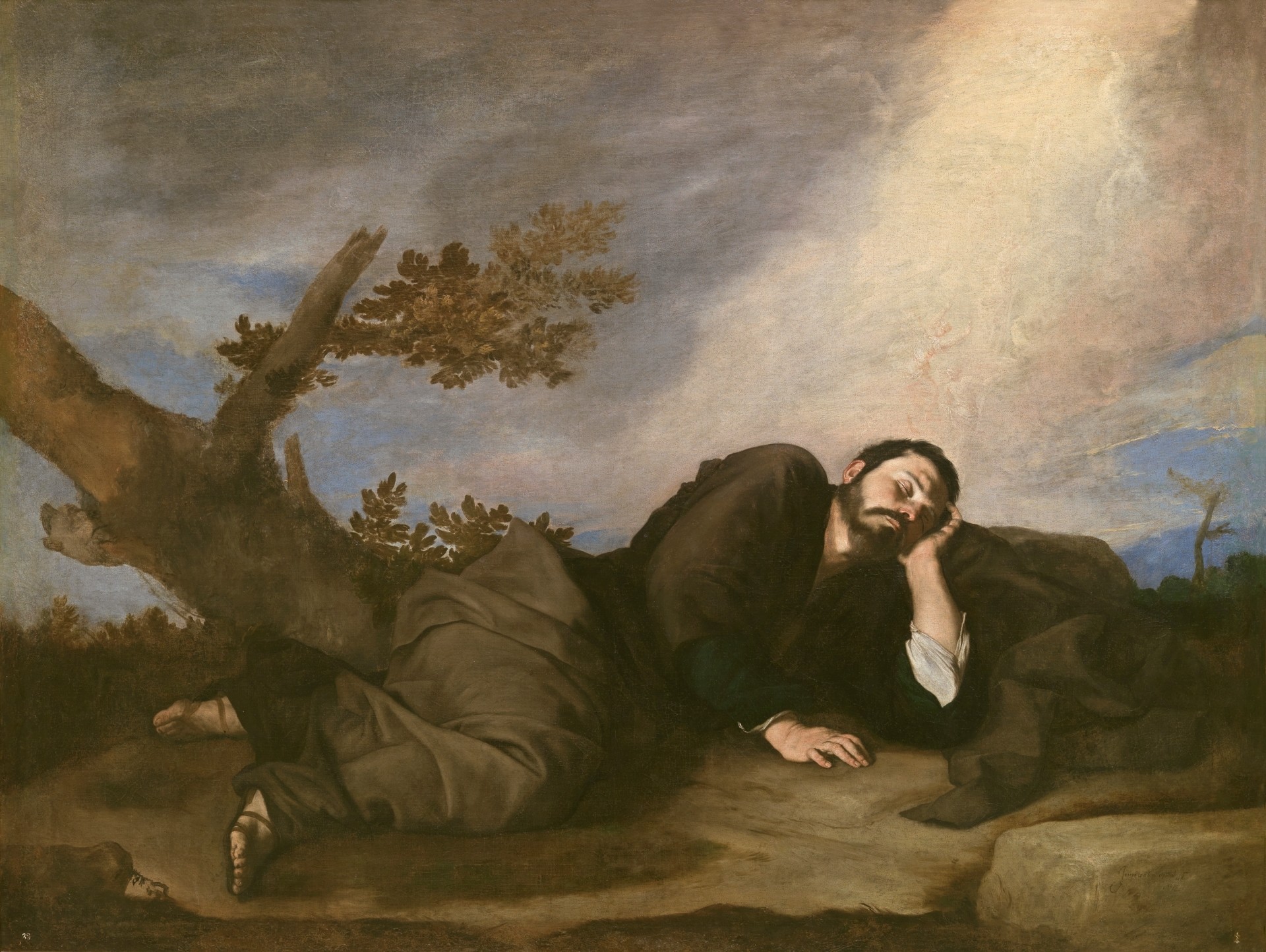 El cuadro narra el sueño misterioso del patriarca Jacob, según relata el Génesis, quien aparece dormido, recostado sobre el brazo izquierdo. Detrás de él se encuentra un árbol y al otro lado la escala de luz por la que suben y bajan los ángeles. El asunto muestra la capacidad técnica de Ribera para construir un discurso metafórico.