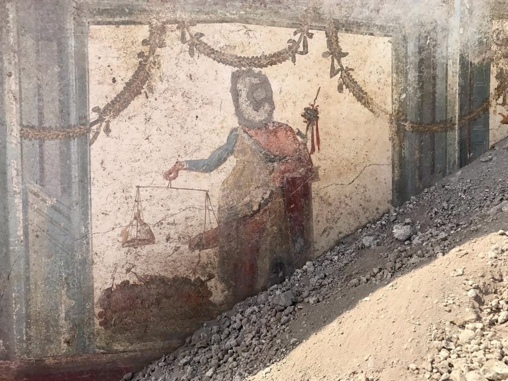 El fresco con la imagen de Príapo se encontraba en la entrada de esta casa, que además contaba con elegantes habitaciones decoradas con detalle, un nuevo tesoro que emerge de esta ciudad, que quedó sepultada en el año 79 d.C. por la violenta erupción de fuego, ceniza y vientos tóxicos del imponente Vesubio, que arrasó también otras localidades cercanas, como Herculano o Estabia.