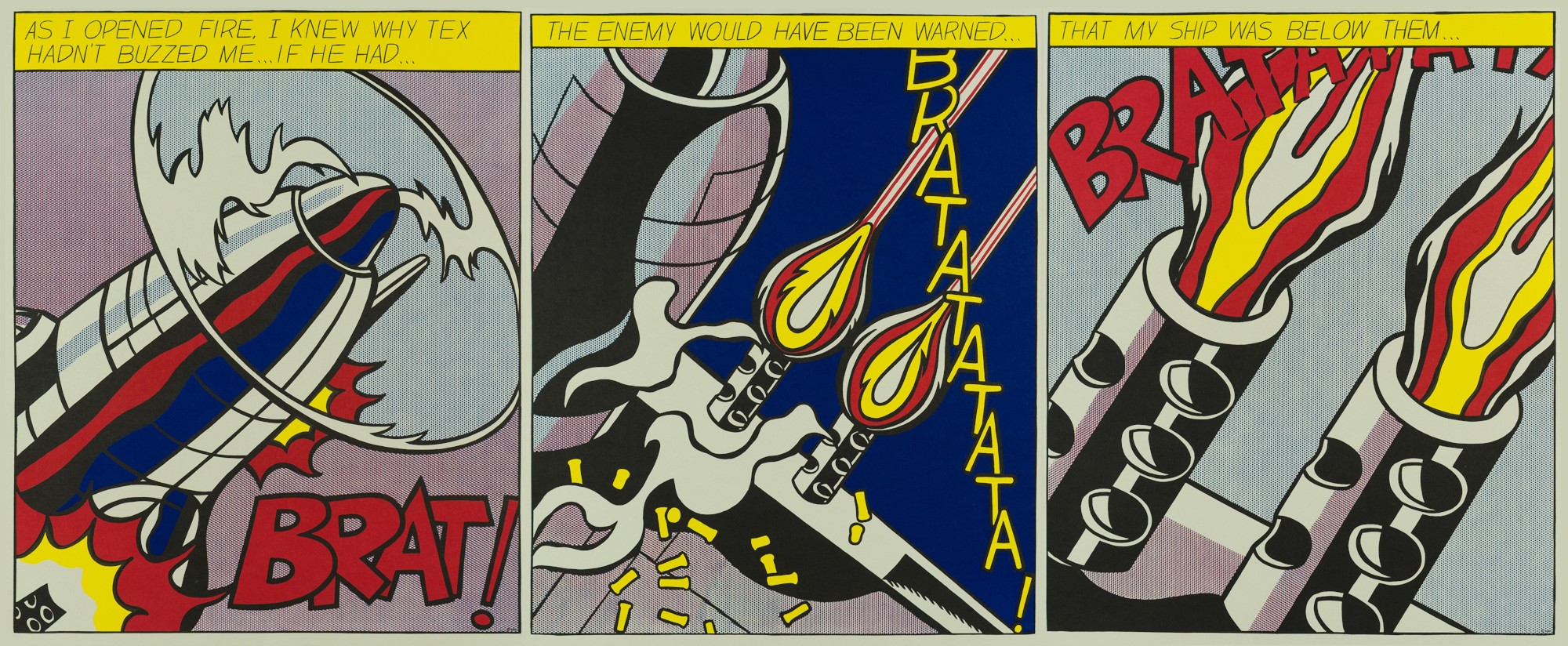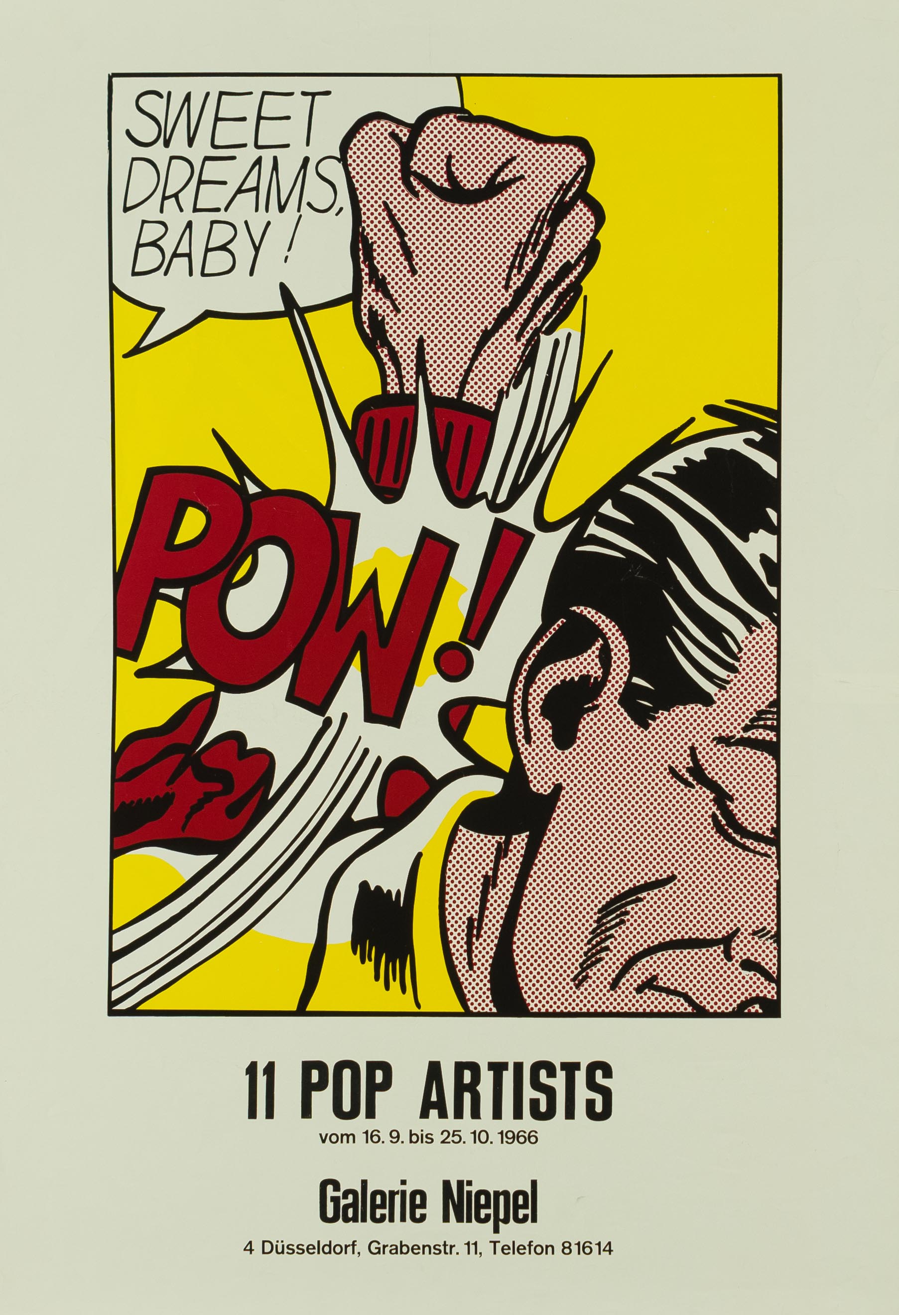 Esta obra incluye la singular onomatopeya POW! con la que en los cómic se acompaña un puñetazo.