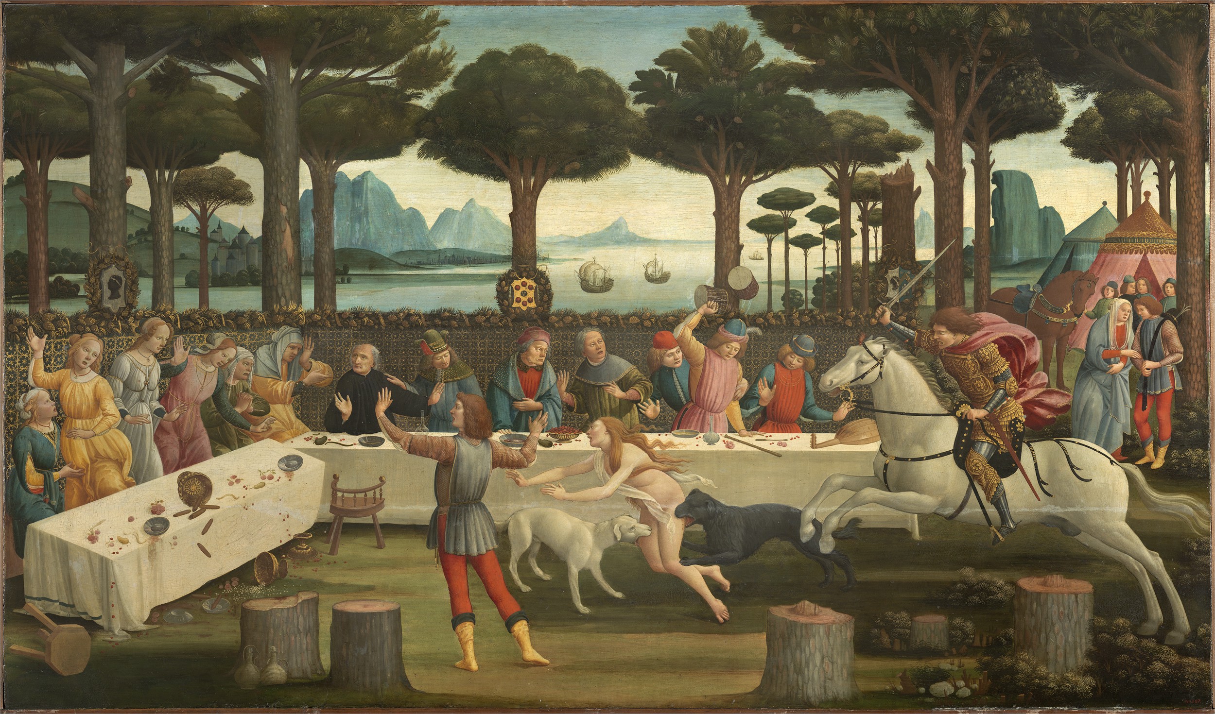 Escenas de La historia de Nastagio degli Onesti (1483), de Sandro Botticelli.