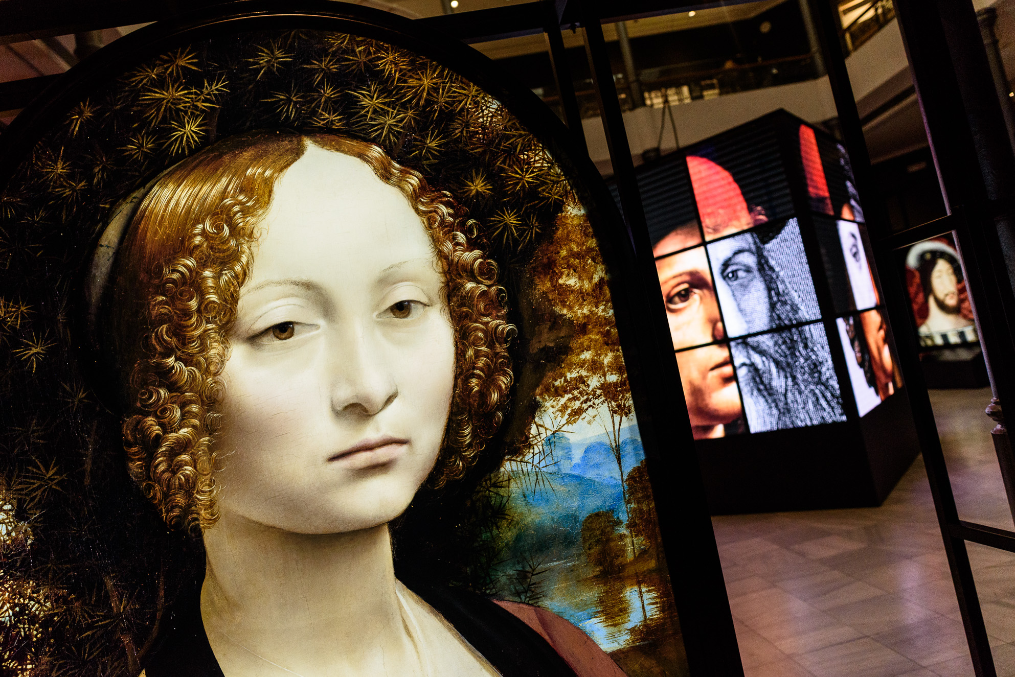 La exposición recorre los distintos rostros del artista del Renacimiento, para mostrar su cara de aprendiz, de maestro, de fracasado y de carne y hueso. Para ello, se vale de réplicas de sus obras, grabados que formaron parte de distintos libros publicados a lo largo de la historia sobre su vida y su obra y ejemplos de realidad virtual y mixta.