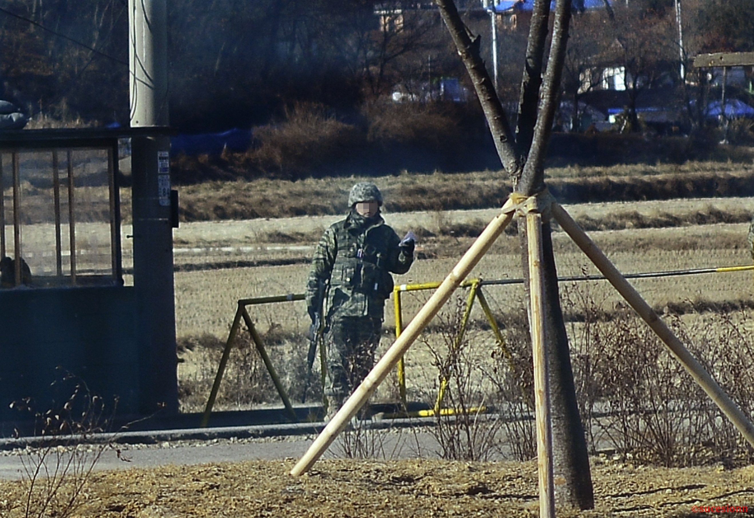 Fueron casi cuatro años de preparativos, estudiando el terreno y los puntos más factibles para la intervención. "Además de los soldados, había minas antipersonas, cámaras de seguridad, sensores de movimiento y francotiradores norcoreanos. Teníamos unos 55 segundos para hacer la performance antes de ser detenidos", explica. Le sobraron diez segundos. Llegaron al lugar elegido tras pasar un control militar surcoreano en el que dijeron estar practicando trekking. "Si nos llegan a detener hubiera sido un problema de seguridad nacional para Corea del Sur y podíamos haber creado un conflicto diplomático. Posiblemente nos hubiéramos enfrentado a 12 años de prisión", confirma el artista. "De cero a diez, el miedo que pasamos fue de 20".