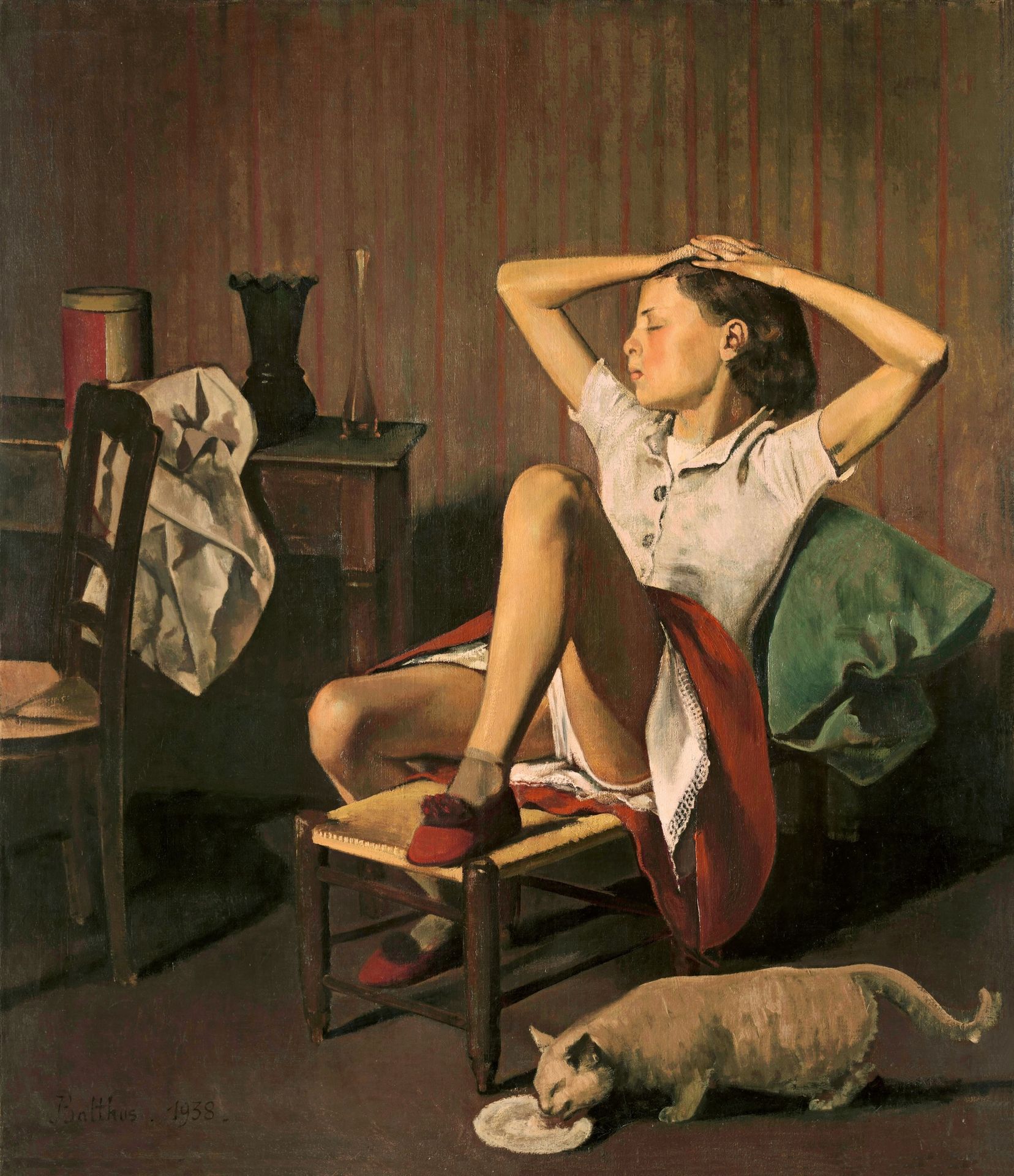 Esa y otras obras controvertidas del pintor francés conforman la retrospectiva que acoge el Museo Nacional Thyssen-Bornemisza, organizada conjuntamente con la Fondation Beyeler en Riehen/Basilea. "Se ha dicho que mis niñas desvestidas son eróticas. Nunca pinté con esa intención, que las habría convertido en anecdóticas. Superfluas. Porque yo pretendía justamente lo contrario, rodearlas de un áurea de silencio y profundidad, crear un vértigo a su alrededor", se defendió Balthus en una ocasión.