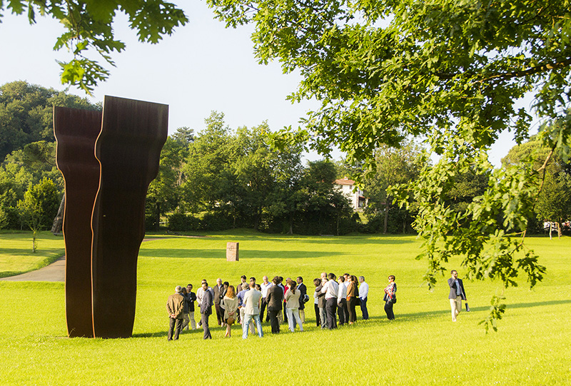 Chillida Leku cuenta con 43 esculturas de gran formato fuera, en las campas de Zabalaga, entre ellas también cuentan algunos préstamos como, Elogio del hierro III, prestada por el BBVA o Elogio de la luz, que vuelve tras años de periplo por el mundo.