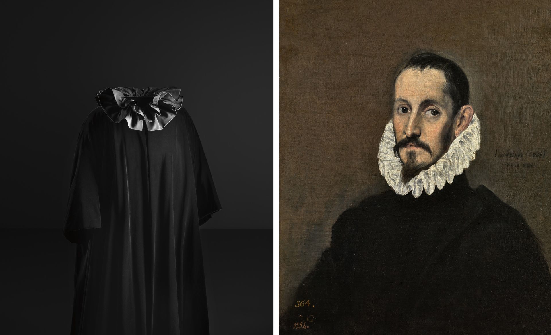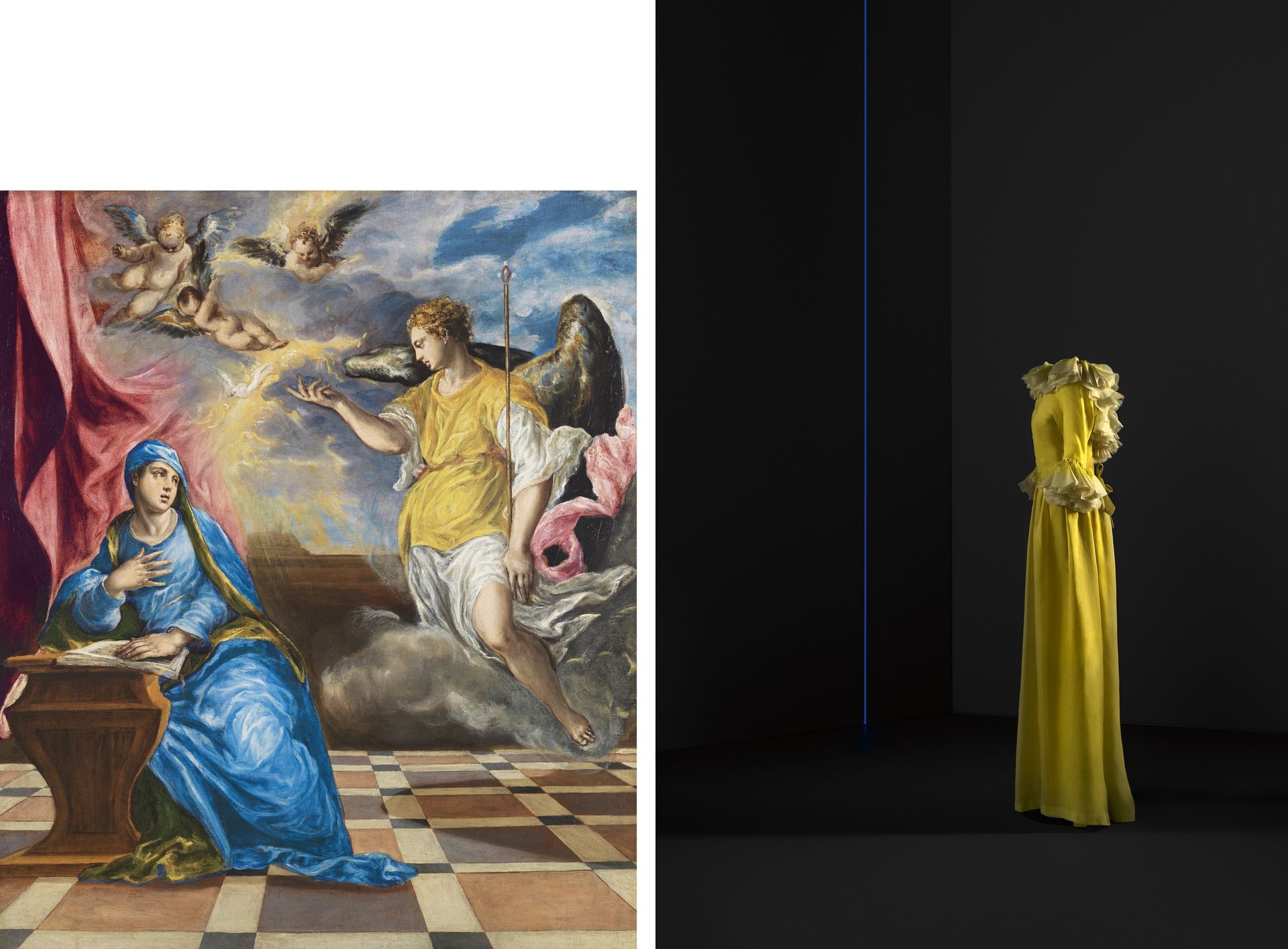 A la izquierda, Anunciación, de 1576 (Museo Thyssen). A la derecha, vestido de noche de organza de seda 1968 (Colección de Dominique Sirop / Jon Cazenave)
