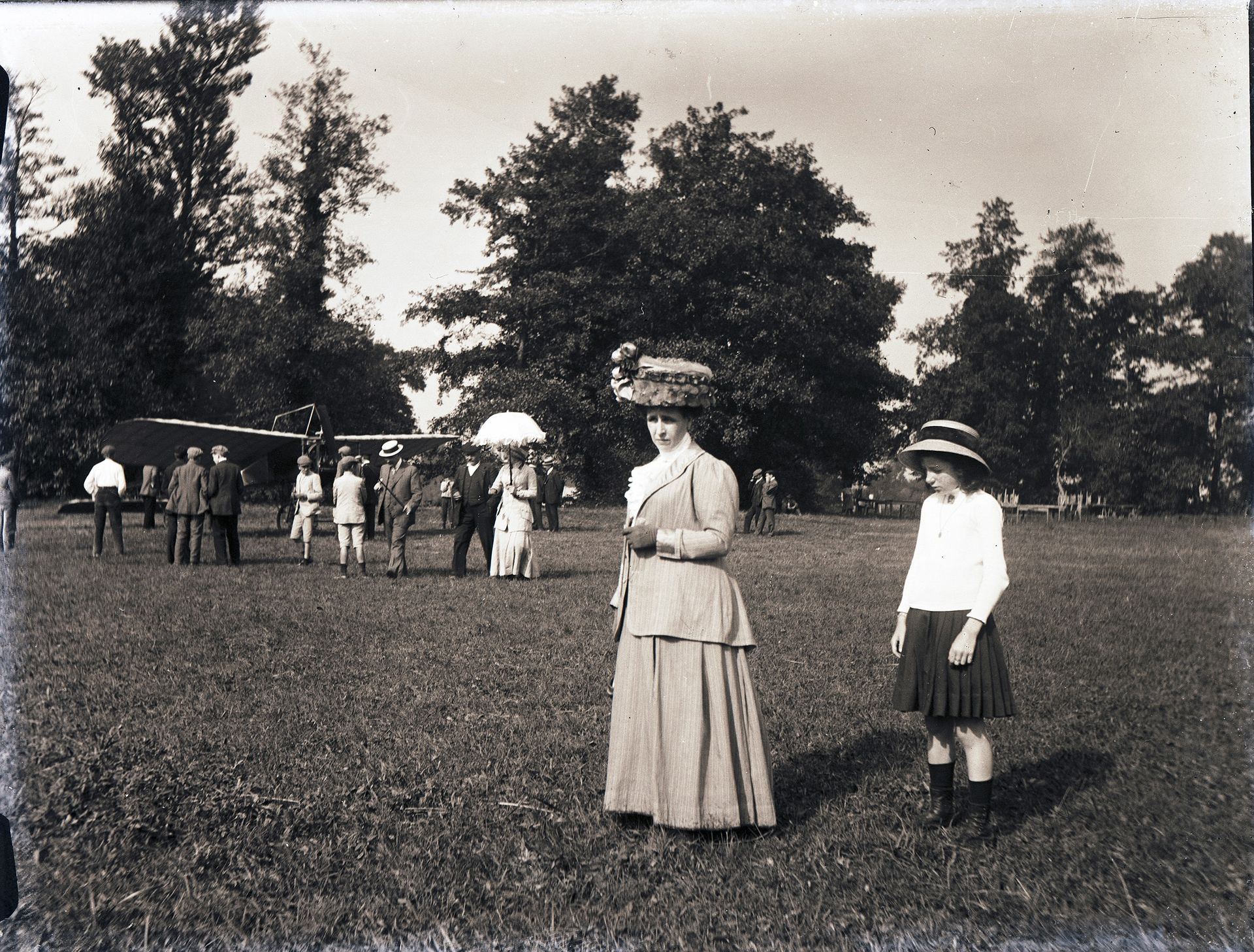 Madre e hija se retratan delante de un Blériot XI durante la Semana de la Aviación de Gijón en septiembre de 1910.