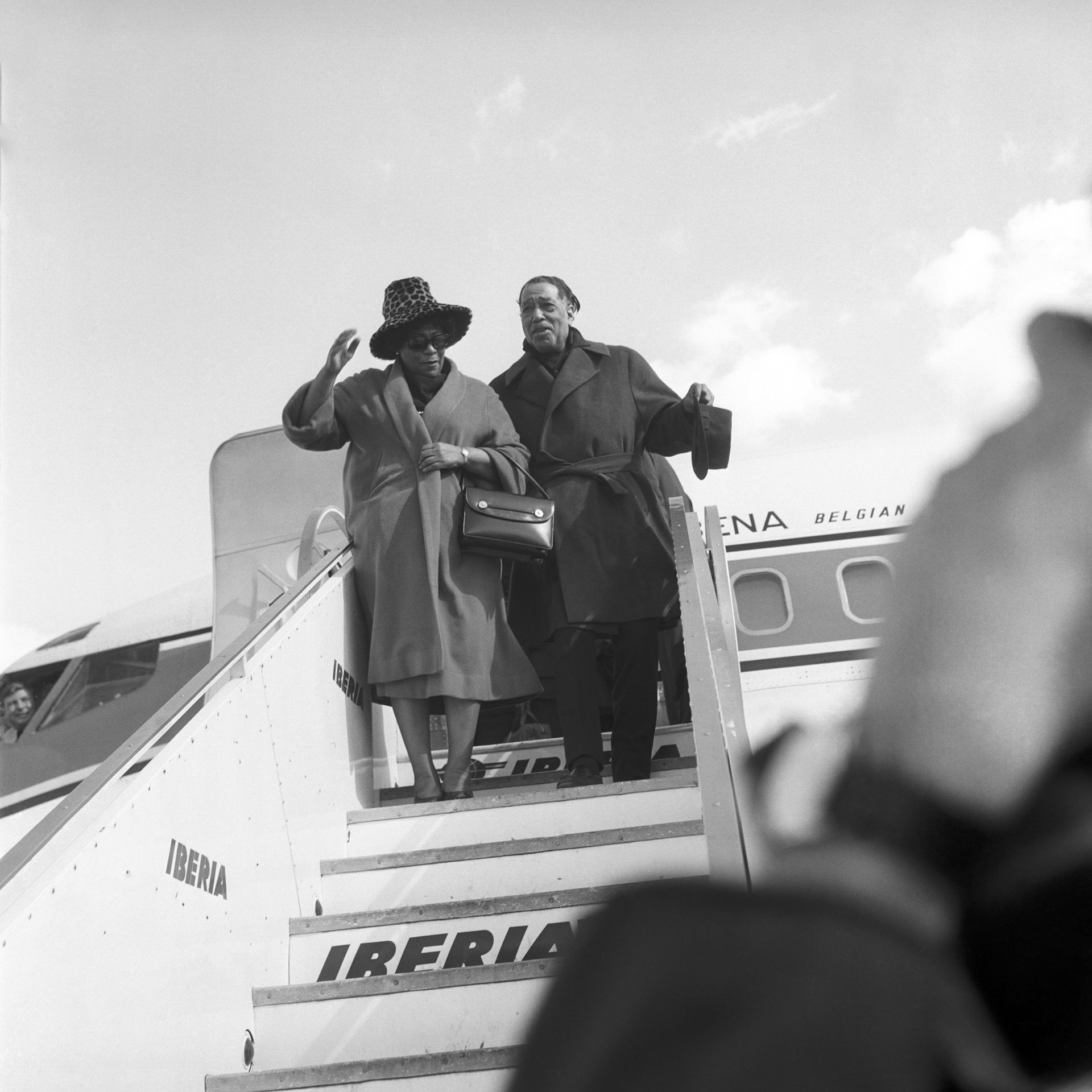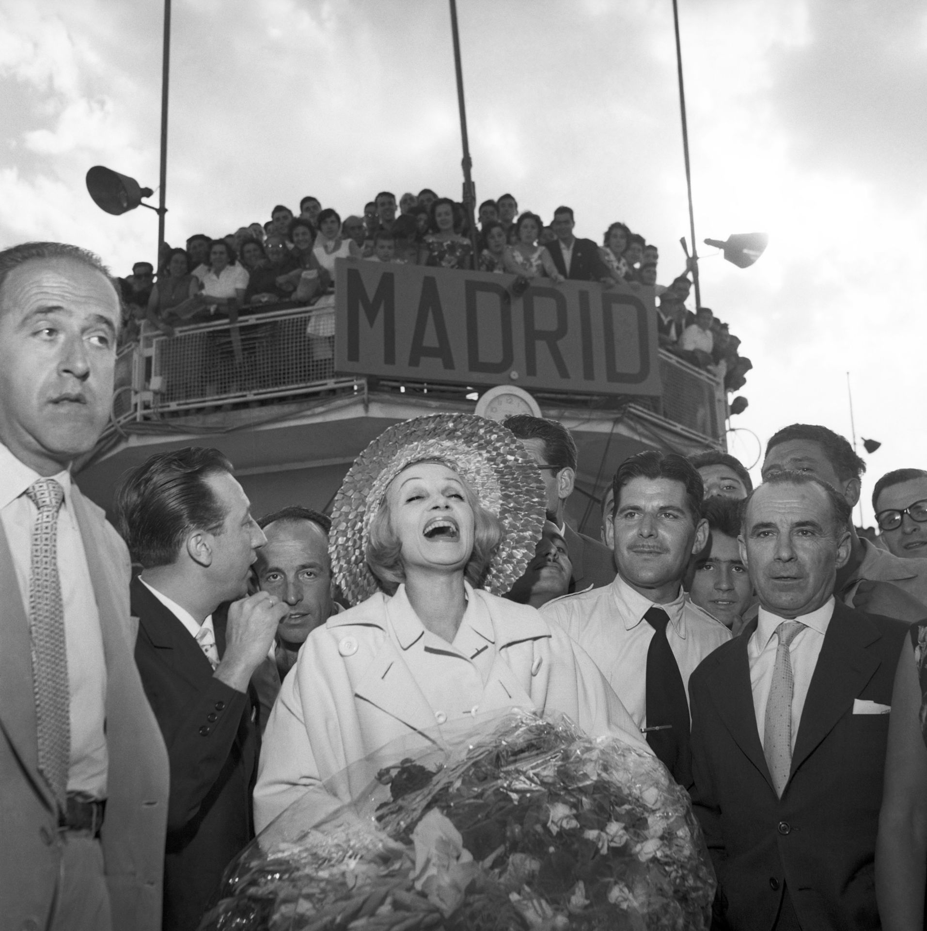 La actriz y cantante de origen alemán Marlene Dietrich a su llegada al madrileño aeropuerto de Barajas, recibida por multitud de periodistas y admiradores. Madrid, 3 de julio de 1960.