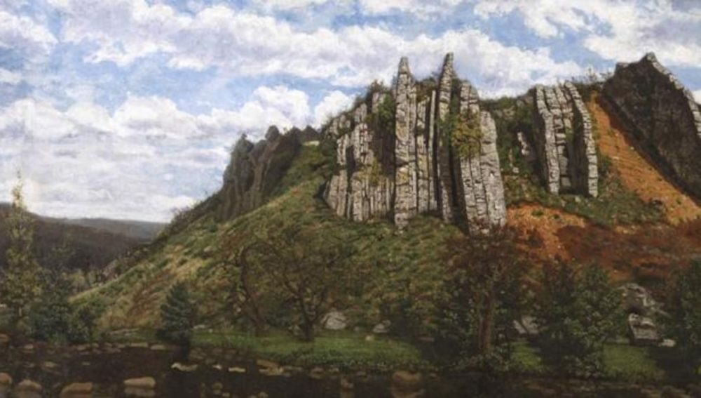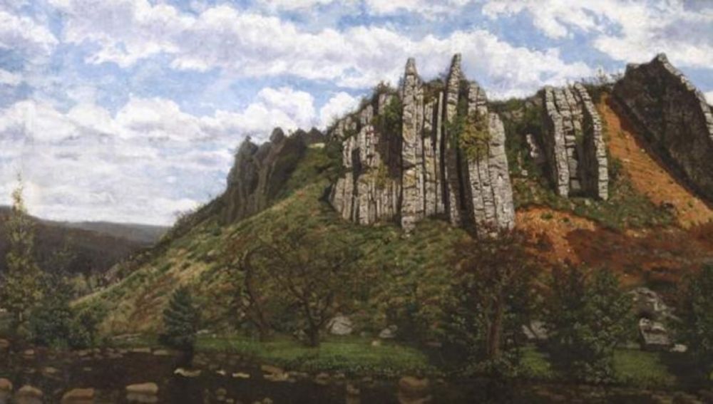 Siendo el pintor cántabro, como he leído en los comentarios y por buscar un lugar en Cantabria, a mí el único lugar que me resulta similar es la formación de los Molinucos del Diablo, en la parte alta del valle del Saja. a href="https://t.co/kys3emGktA">pic.twitter.com/kys3emGktA