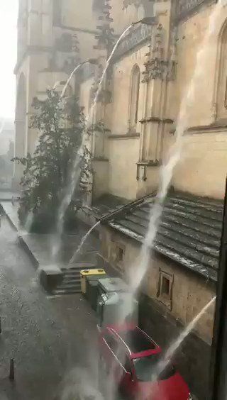 Así desaguan las gárgolas de la Catedral de Segovia cuando cae una tormenta