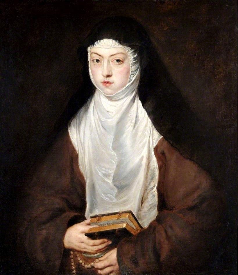 En 1580, el monasterio acogió a María de Austria, hija de emperador Carlos V y esposa de emperador Maximiliano II, que llegó con su hija de trece años, Margarita, quien acabó por tomar los hábitos con el nombre de Margarita de la Cruz. Moriría a los sesenta y seis años en el convento. También se acogió a la fe Ana Dorotea, hija ilegítima del emperador Rodolfo II. Rubens la inmortalizó en uno de los cuadros que exhibe la muestra.
