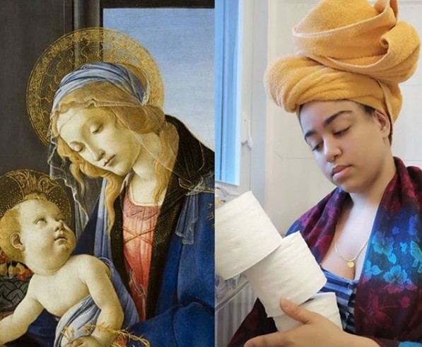 La obligatoriedad de permanecer en casa ante la pandemia de coronavirus está avivando la creatividad de muchas personas, que lejos de dejarse arrastrar por el pesimismo y la desidia han decidido sacar lo mejor de sí mismas y aportar un poco de sentido del humor a estos tiempos. La cuenta de Instragram #tussenkunstenquarantaine ha lanzado un reto a sus usuarios que ha tenido una acogida extraordinaria: recrear en casa algunos de los cuadros más famosos de la historia.