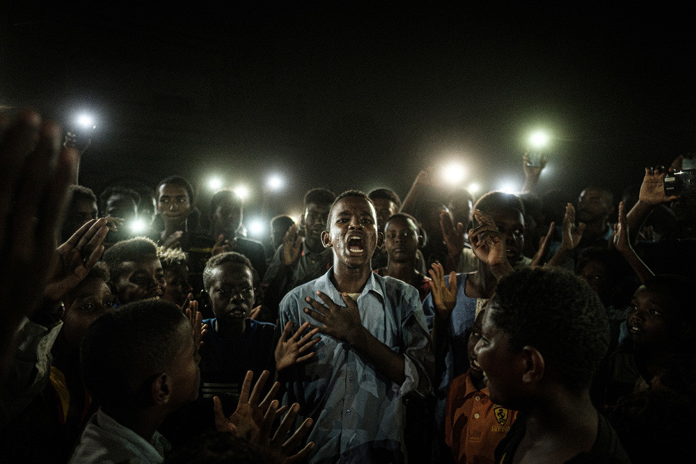 El fotógrafo japonés Yasuyoshi Chiba ha sido galardonado con el World Press Photo por su fotografía del grito pacífico de un grupo de jóvenes en Sudán, que iluminaban con sus teléfonos móviles a un chico mientras recitaba un poema a la multitud en medio de un apagón durante las protestas en Jartum el año pasado.