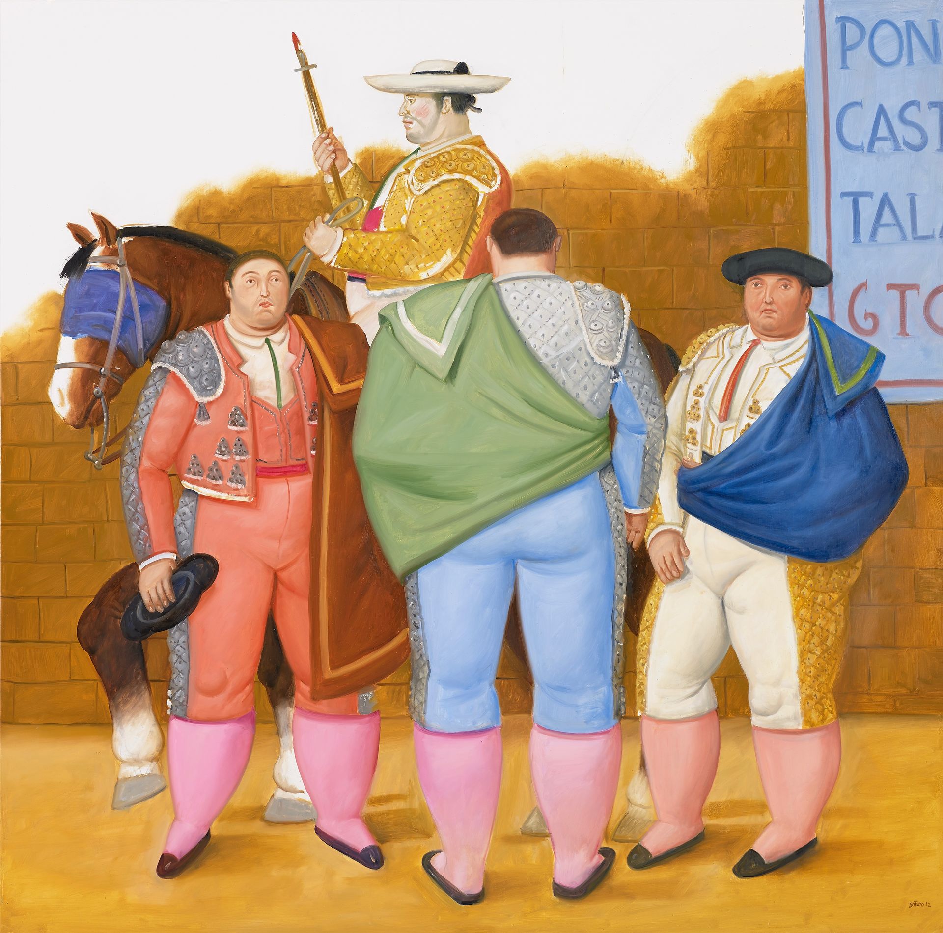 Carboncillo sobre tela. El mundo del toro es un motivo pictórico que despierta especial entusiasmo en Botero, gran aficionado. Su estilo destila una riqueza cromática inusitada en esta temática, tratada por otros artistas como Goya, Manet o Picasso.