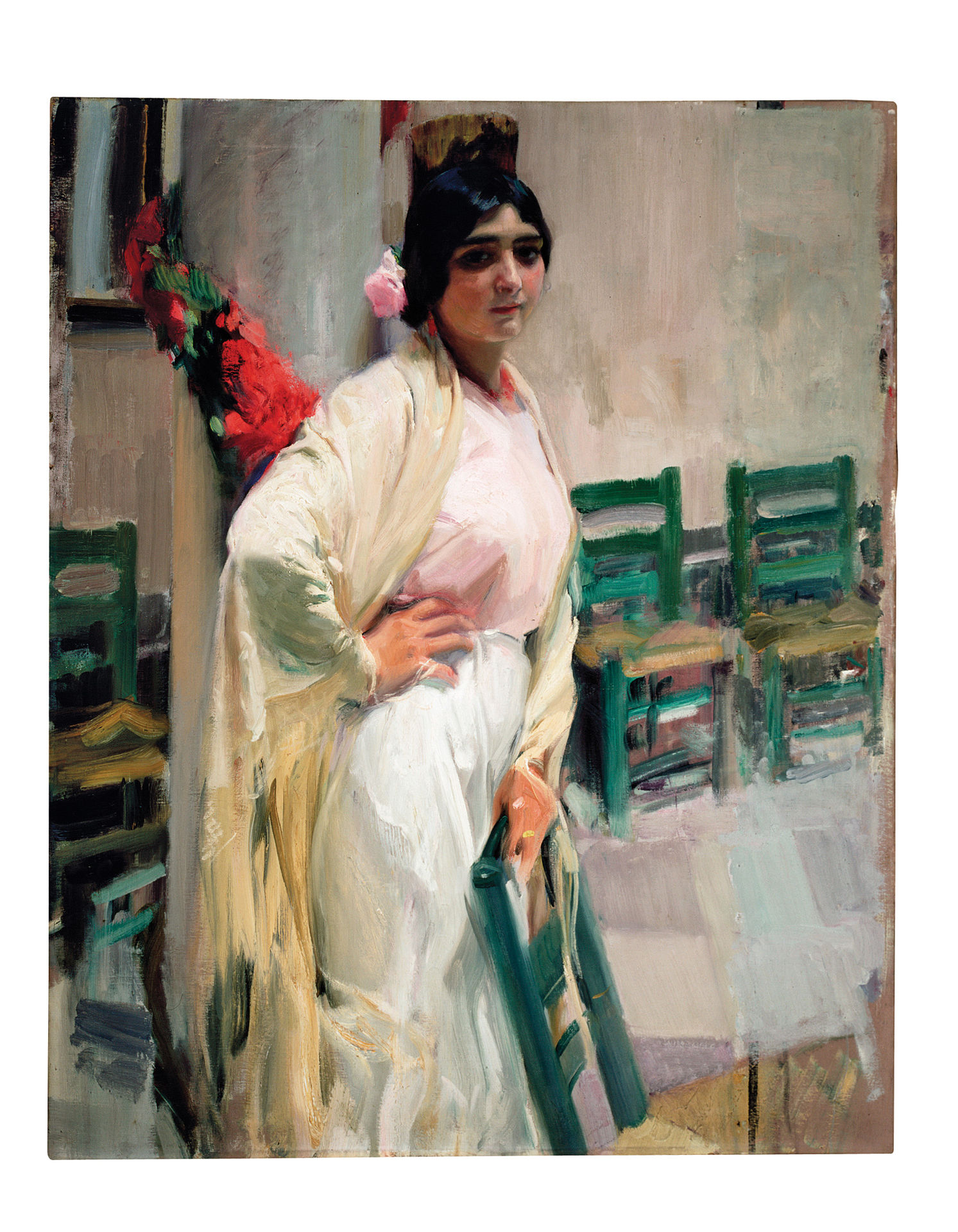 Este retrato de Raquel Meller, en el que el ocre de la pamela sobresale entre la gama de grises y malvas del resto de la composición, fue pintado para la colección de The Hispanic Society of America. Sin embargo, el hijo del artista se encaprichó de él y se lo quedó.