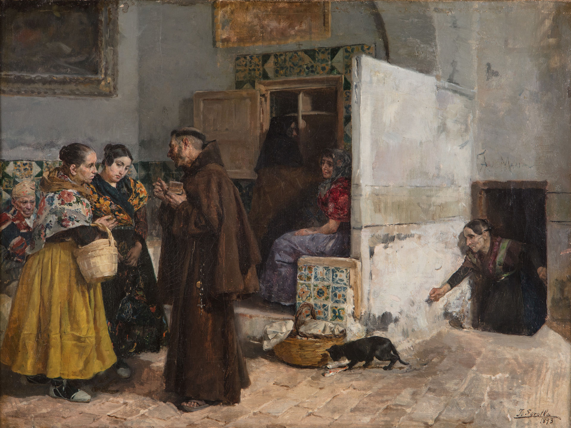 En esta escena, Sorolla pinta a las protagonistas en el papel tradicional de la mujer doméstica: devota, laboriosa y buena madre.